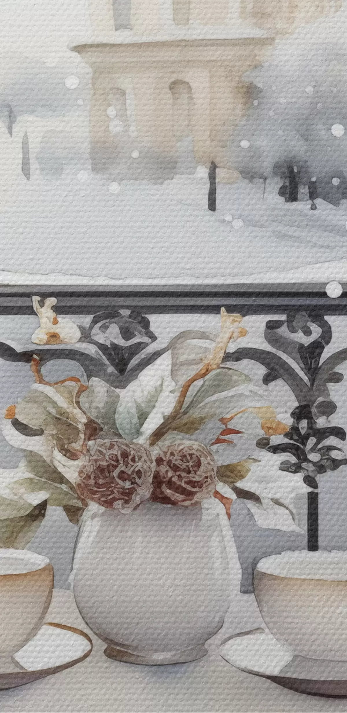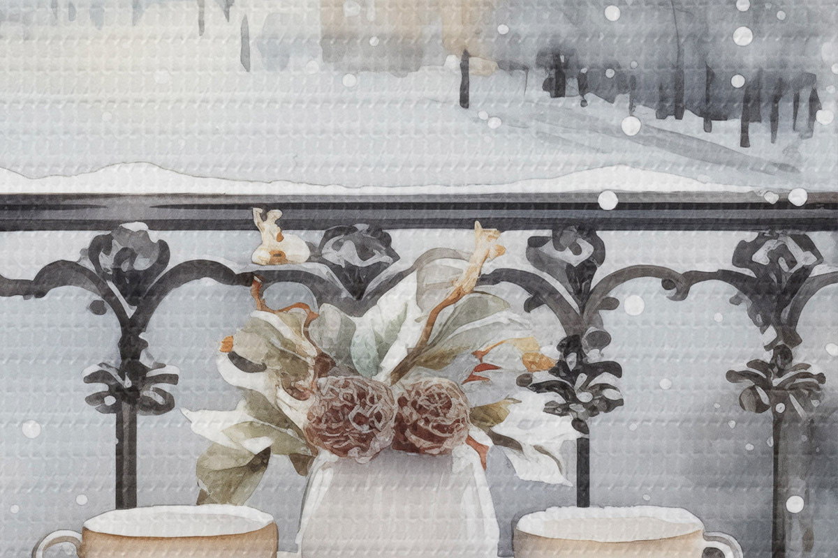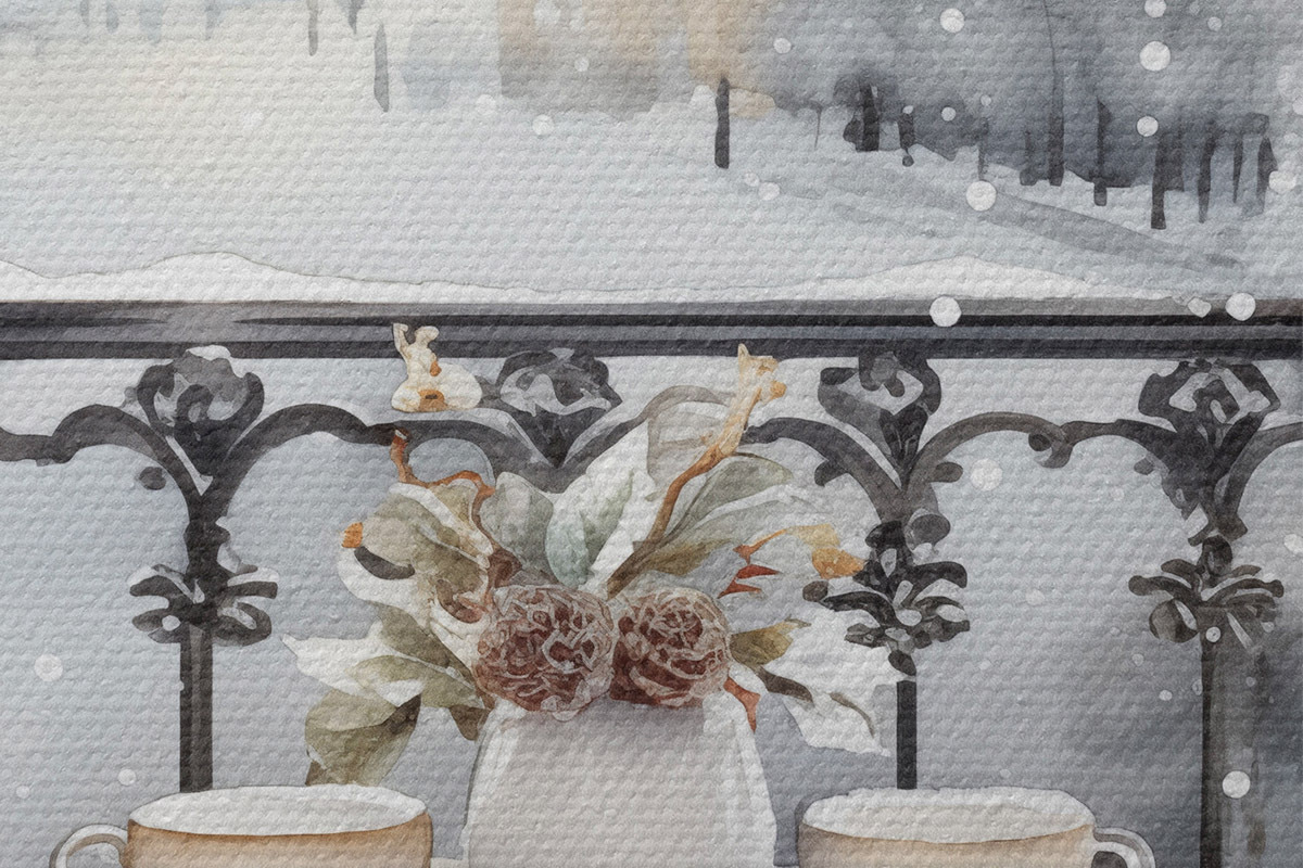Bild Schönes Café, Tassen Tee, böhmischer Stil, Aquarell, Winterästhetik Nr r42796