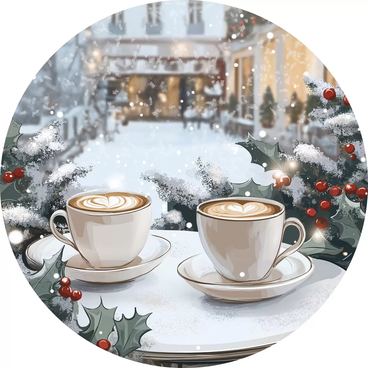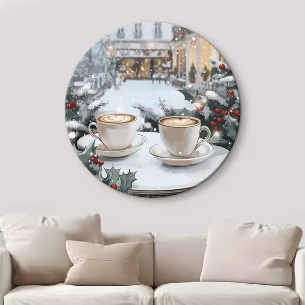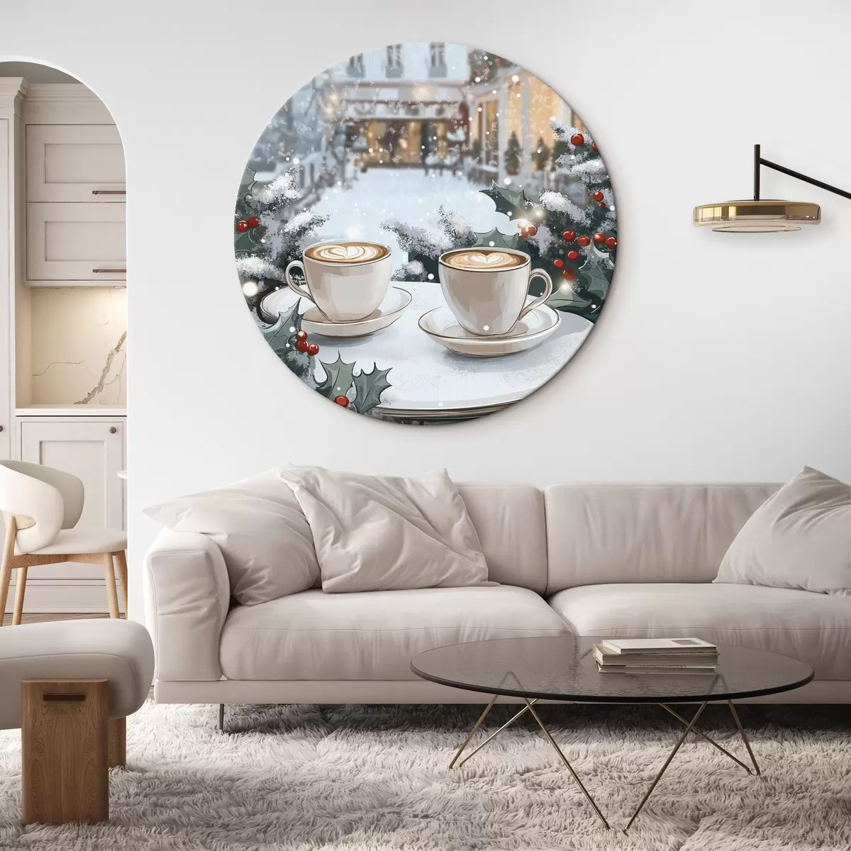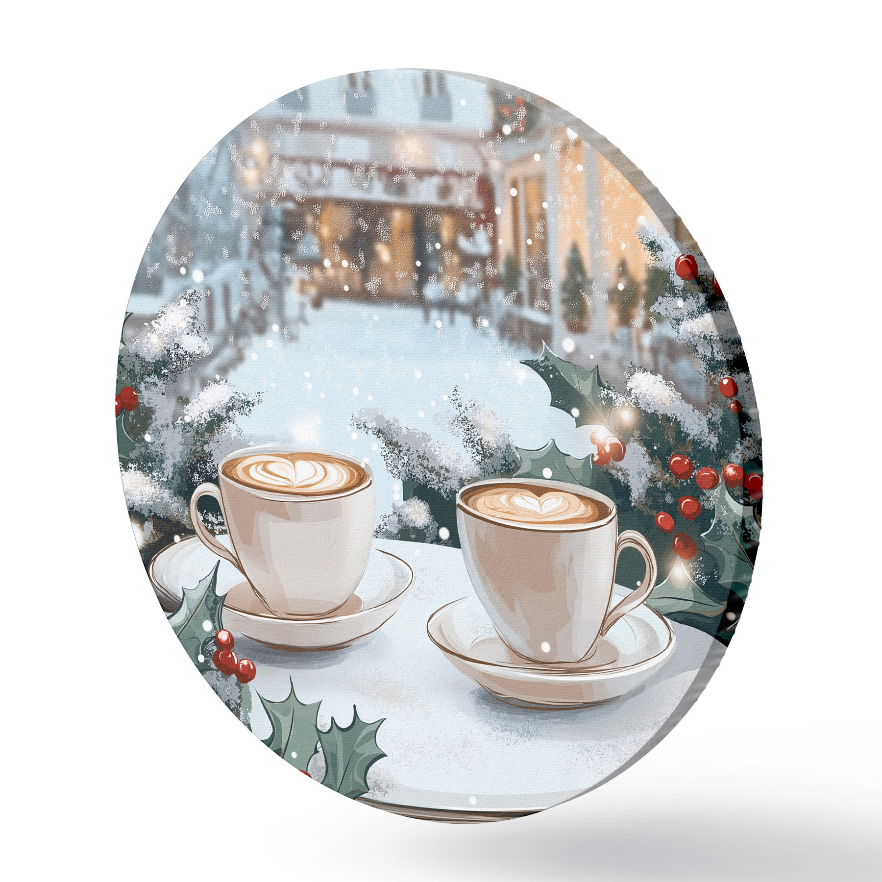 Runde Gemälde Tassen Kaffee im gemütlichen Cafe, Winterästhetik, Boho-Stil r42797