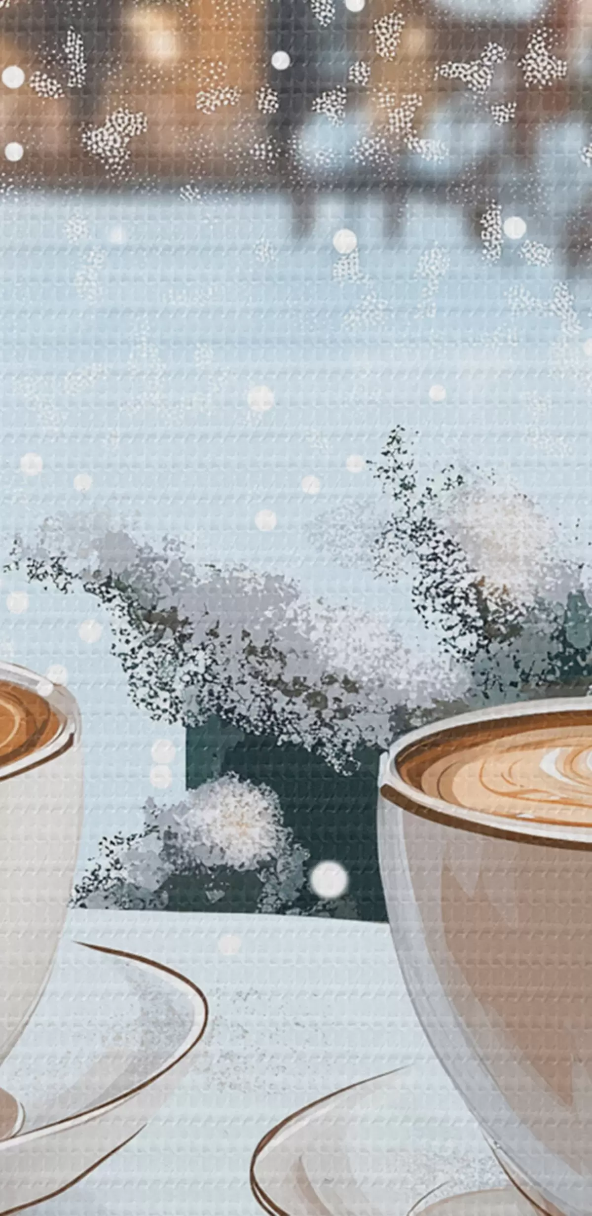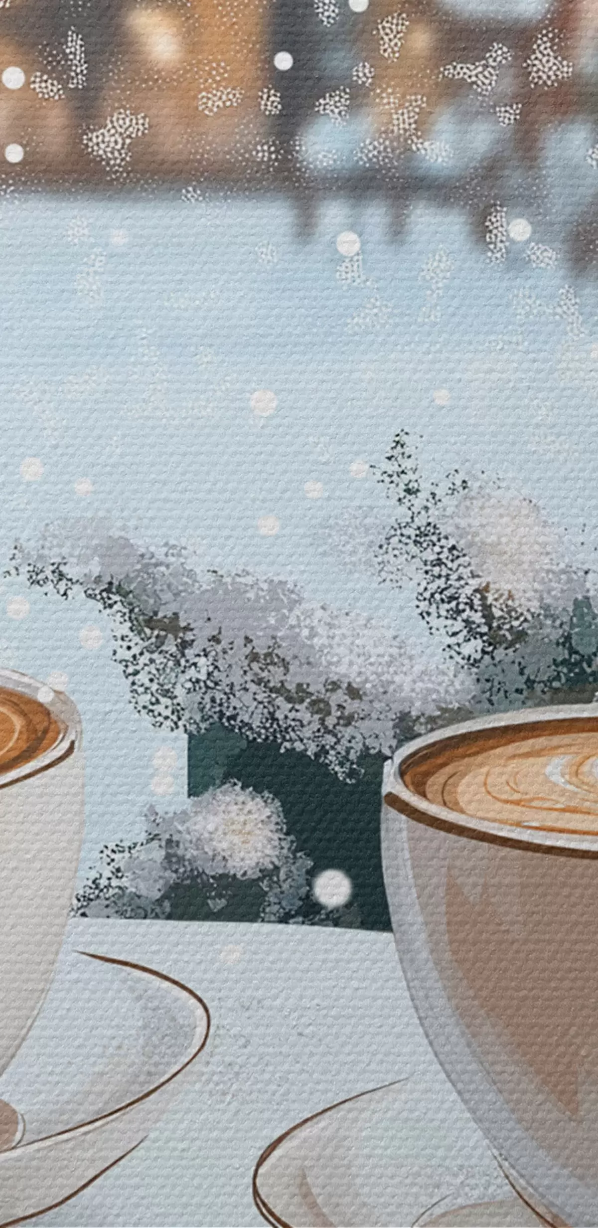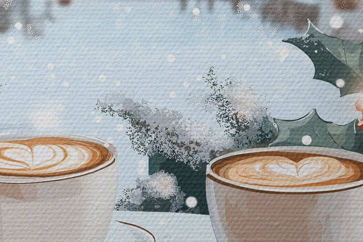 Runde Gemälde Tassen Kaffee im gemütlichen Cafe, Winterästhetik, Boho-Stil r42797