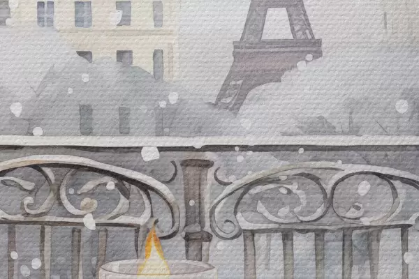 Bild Schönes Café in Paris, Teetassen, romantische Aussicht, Winter, Aquarellstil Nr r42799