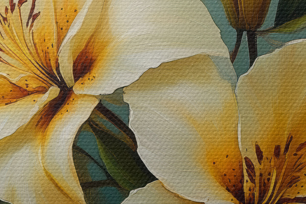 Drei Materialtypen stehen zur Verfügung: Economic Canvas - ein dichtes und haltbares Material für den Digitaldruck, identisch mit Malerleinwand, wasserfeste Oberfläche, realistische Wiedergabe von Details, mittelkörniges Material. Premium Canvas - die Textur ähnelt der einer Malerleinwand (verwobene kleine Fäden). Weiche, detaillierte Wiedergabe des Bildes auf einer matten Oberfläche. Eco-Premium - hochwertiges Gewebe aus 100% Baumwolle. Dank der natürlichen Baumwollfasern ist das Material langlebig und verschleißfest. Hervorragende Farbwiedergabe und Detailtreue.