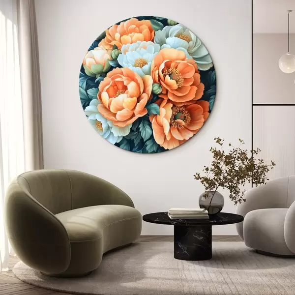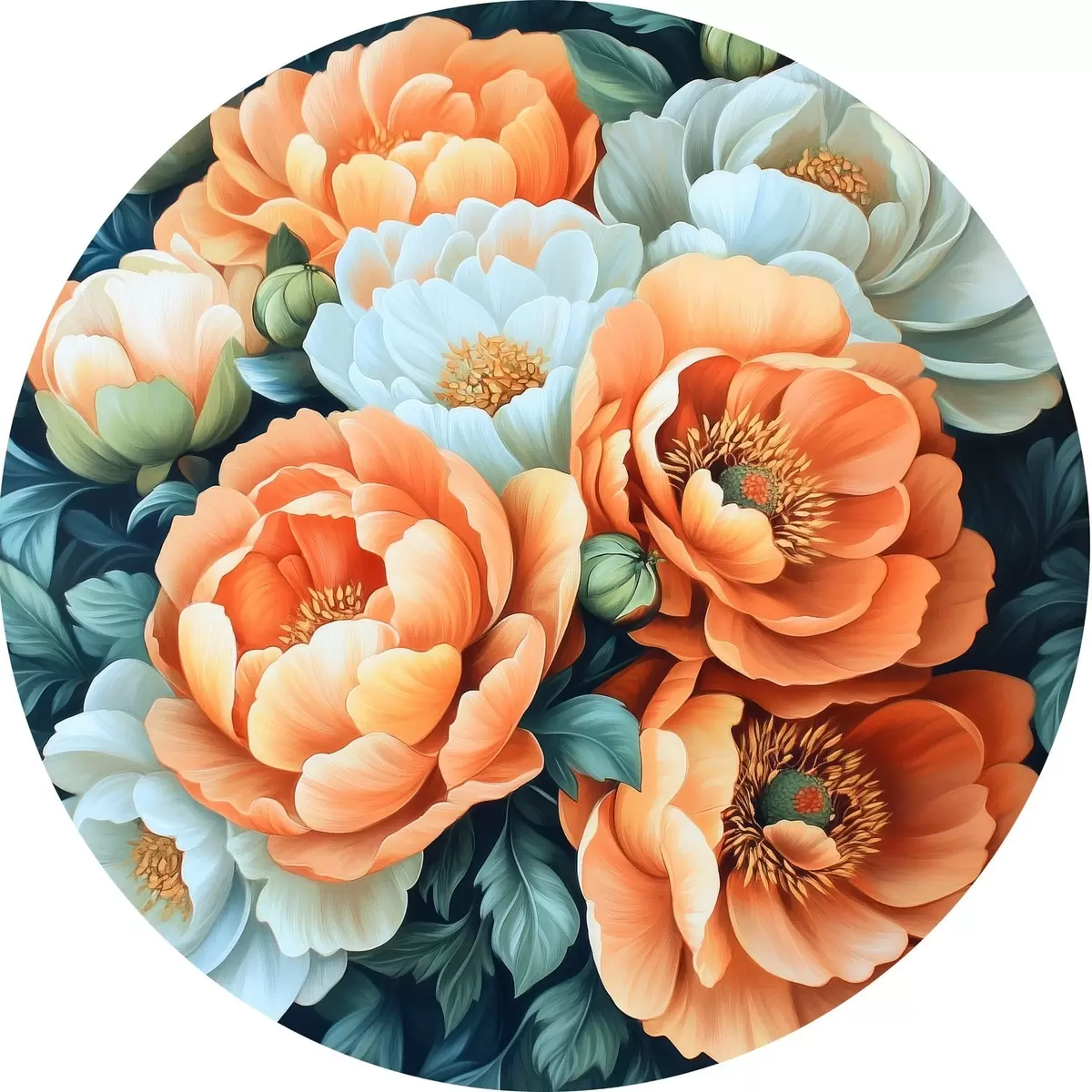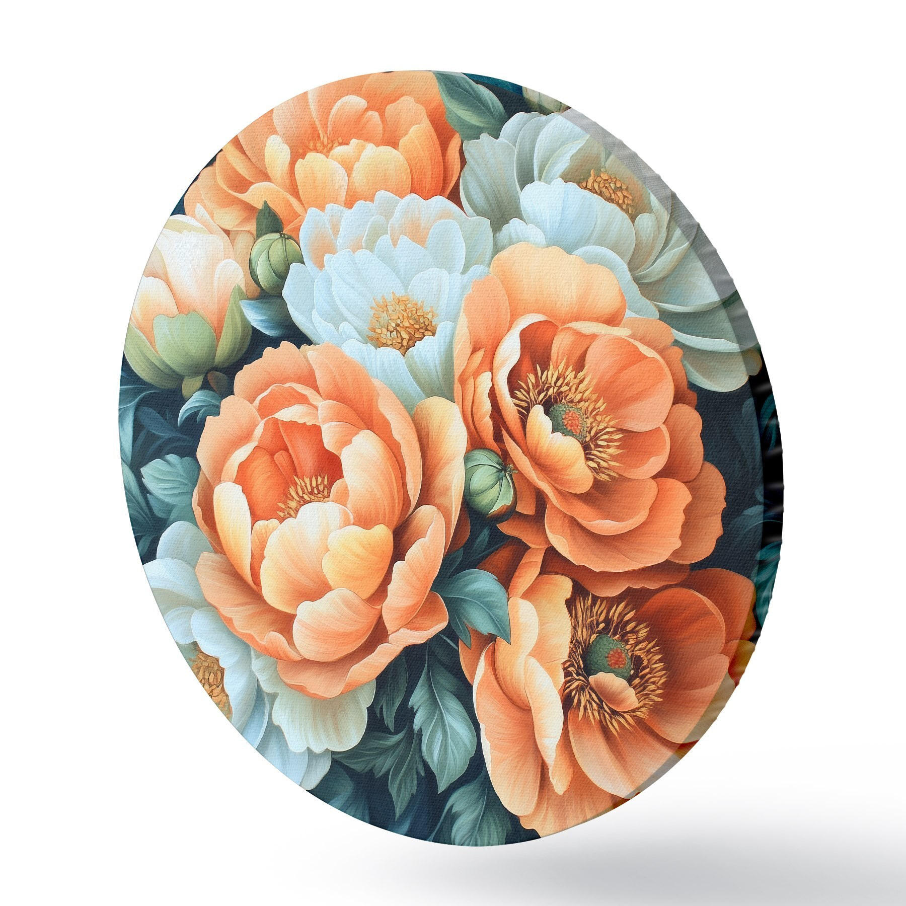 Runde Gemälde Weiße und orangefarbene Blumen r42860