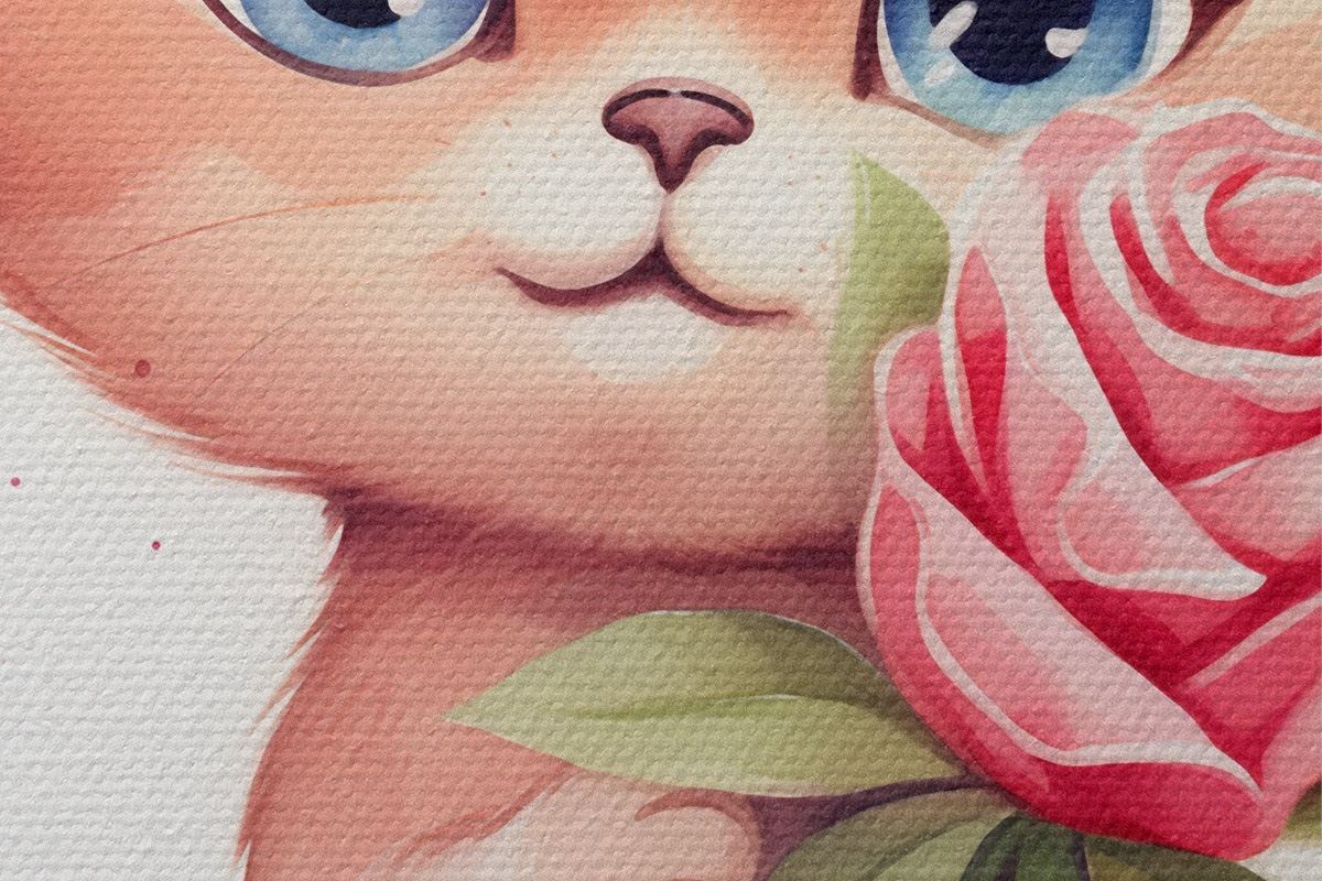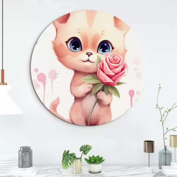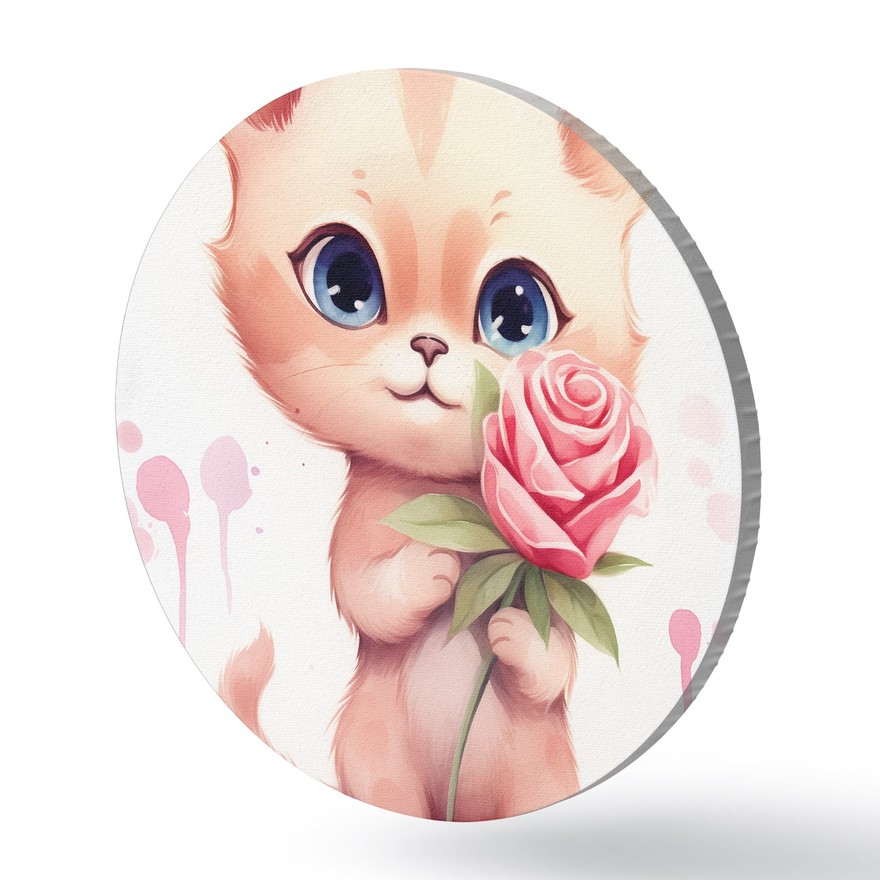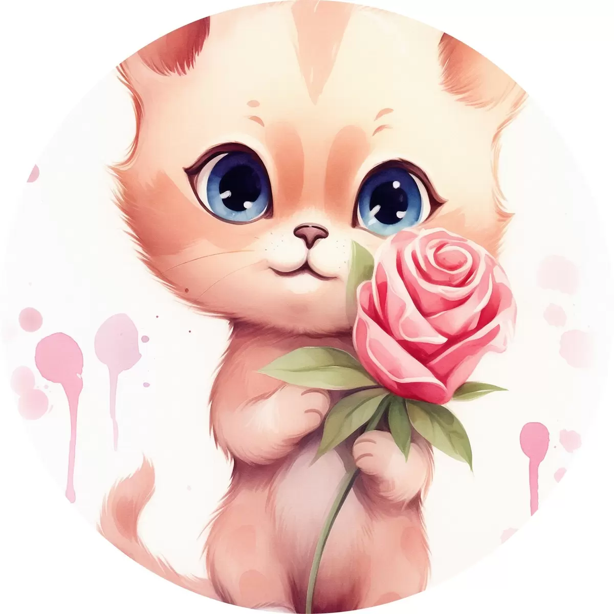 Runde Gemälde Niedliche Katze mit einer Rose r42866