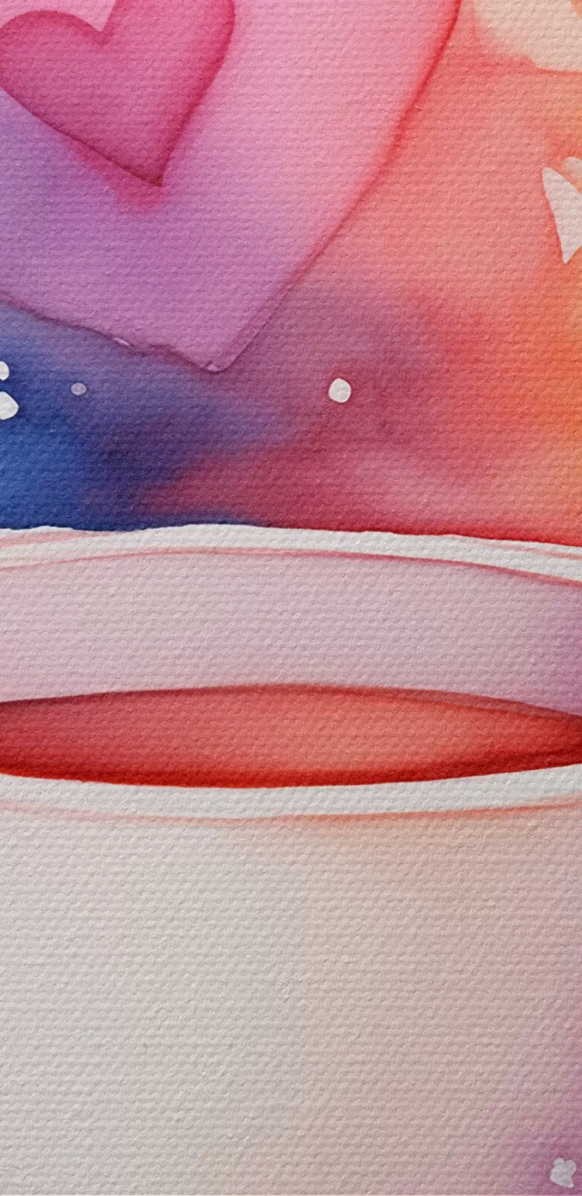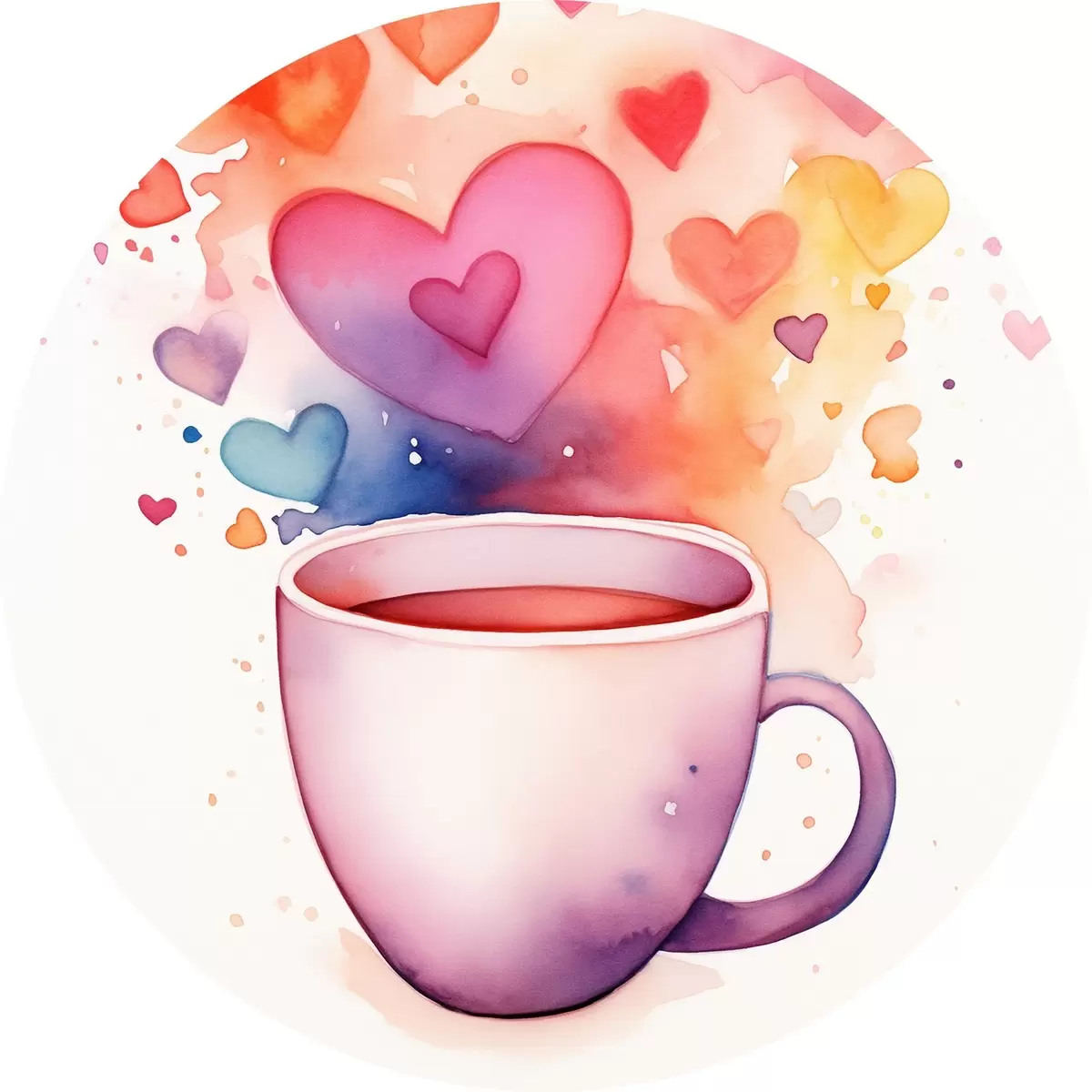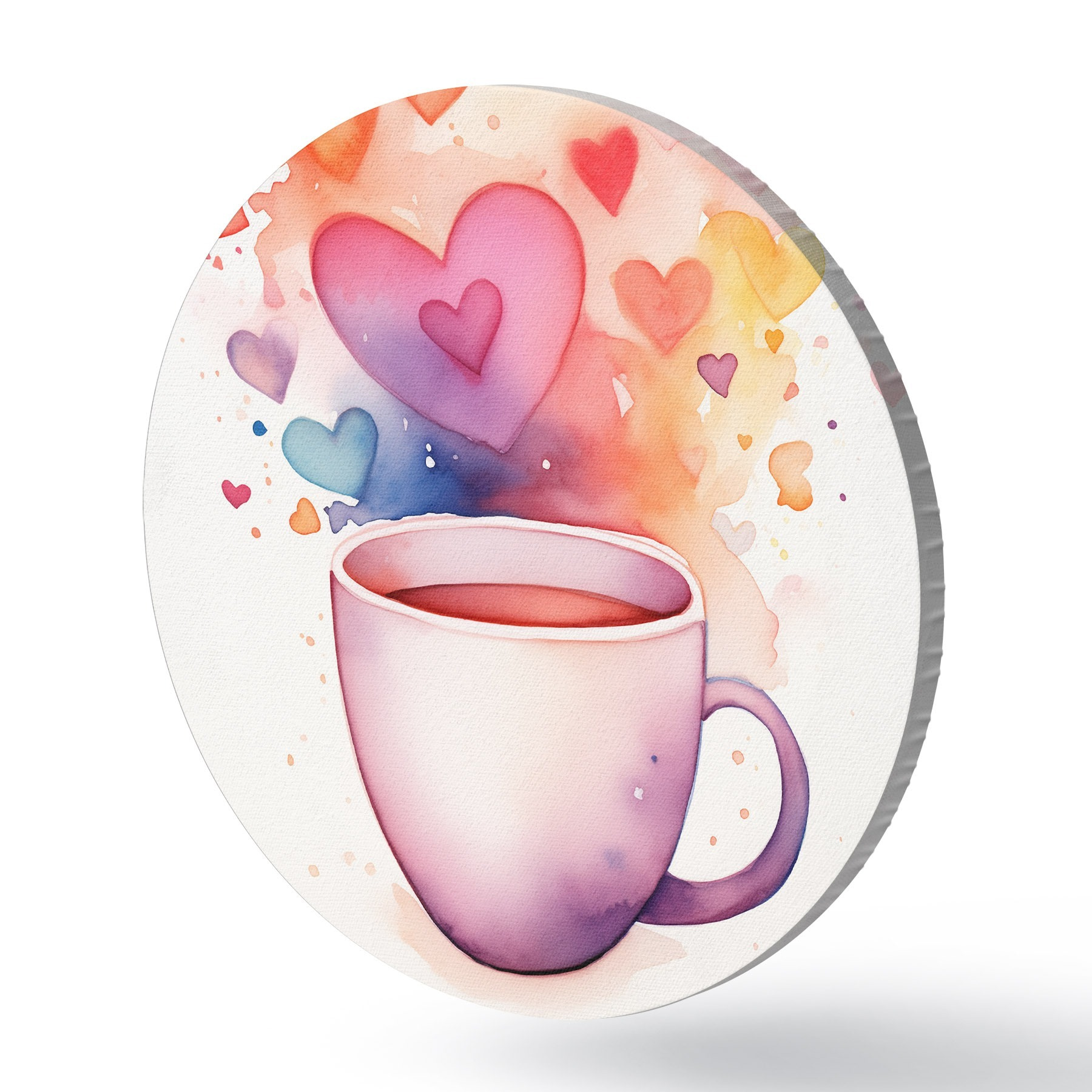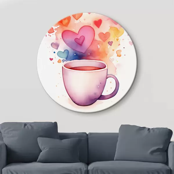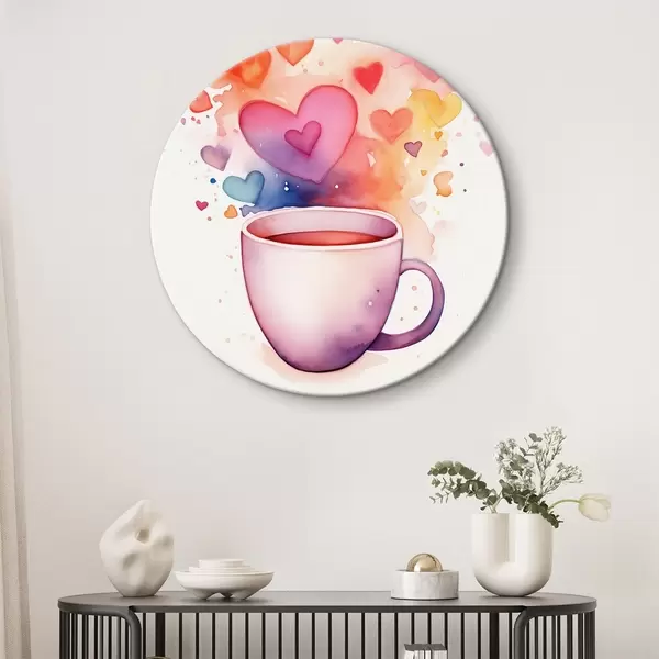 Runde Gemälde Eine Tasse auf einem Hintergrund aus Aquarellherzen r42869