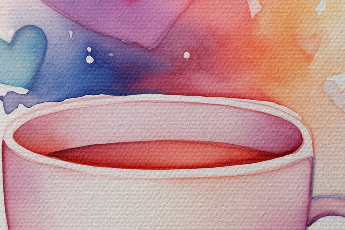 Bild Eine Tasse auf einem Hintergrund aus Aquarellherzen Nr r42869