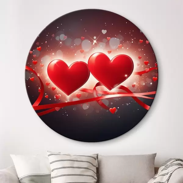 Runde Gemälde Zwei Herzen auf einem abstrakten Hintergrund r42877