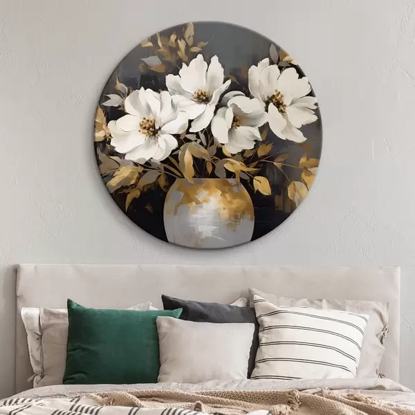 Runde Gemälde Baumpfingstrosen in einer Vase auf einem Tisch r42885