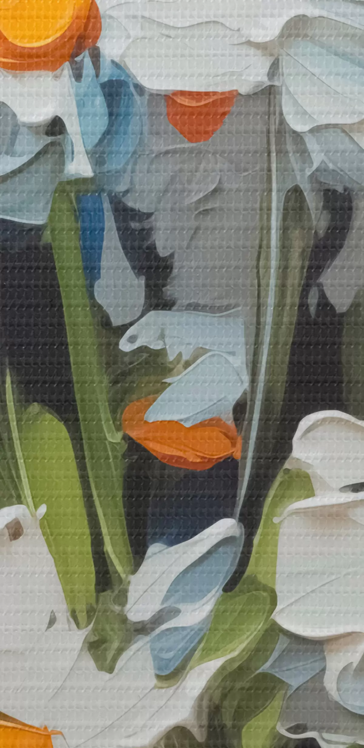 Drei Materialtypen stehen zur Verfügung: Economic Canvas - ein dichtes und haltbares Material für den Digitaldruck, identisch mit Malerleinwand, wasserfeste Oberfläche, realistische Wiedergabe von Details, mittelkörniges Material. Premium Canvas - die Textur ähnelt der einer Malerleinwand (verwobene kleine Fäden). Weiche, detaillierte Wiedergabe des Bildes auf einer matten Oberfläche. Eco-Premium - hochwertiges Gewebe aus 100% Baumwolle. Dank der natürlichen Baumwollfasern ist das Material langlebig und verschleißfest. Hervorragende Farbwiedergabe und Detailtreue.