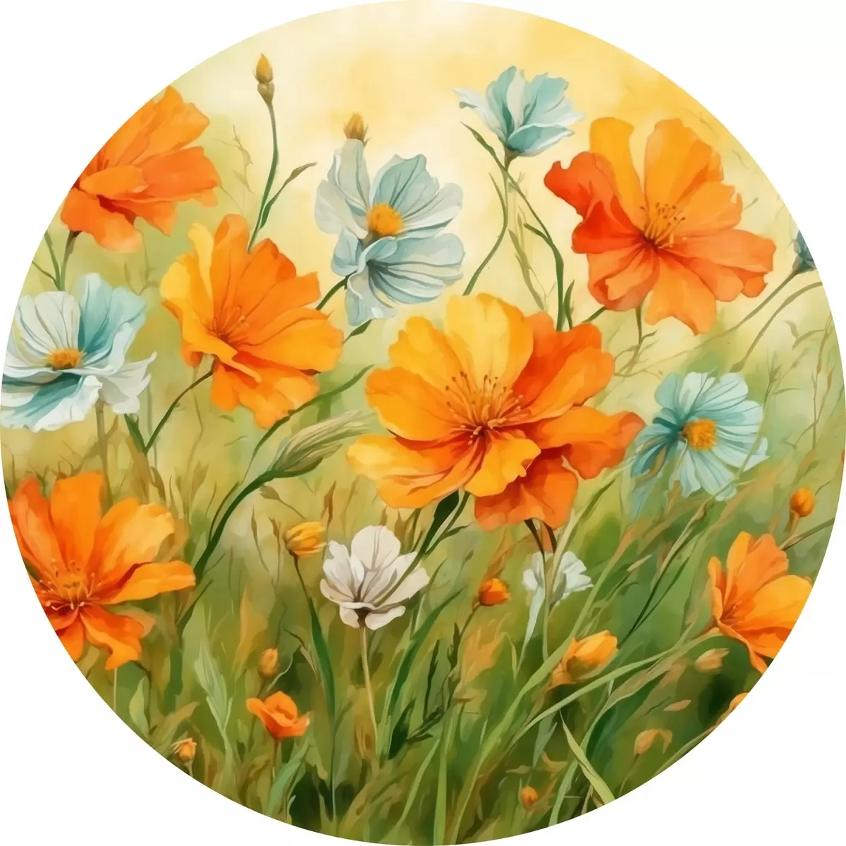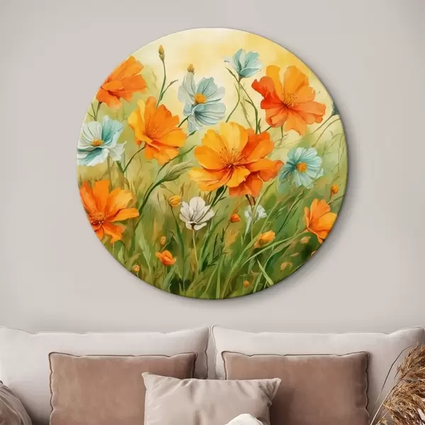 Runde Gemälde Blumen- und Pflanzenfeld im Stil der Aquarellmalerei r42916