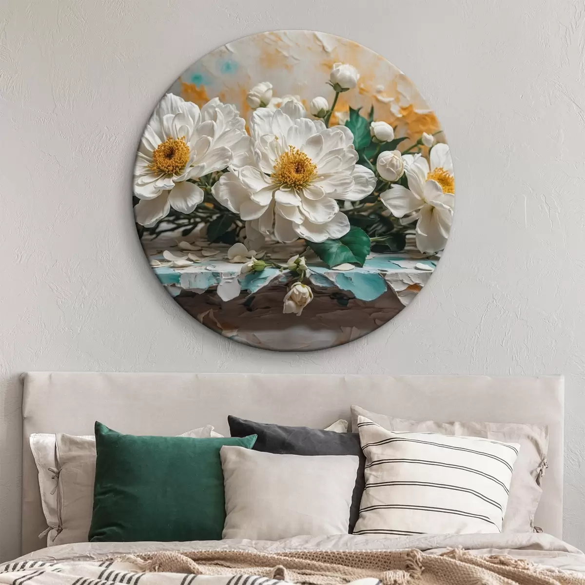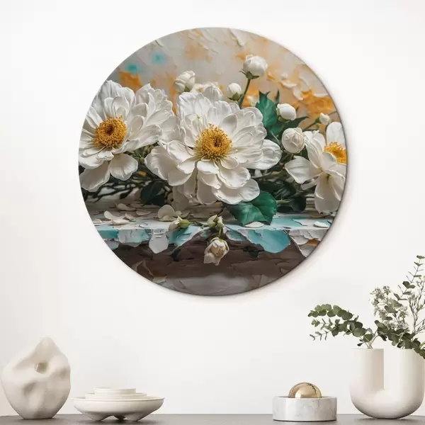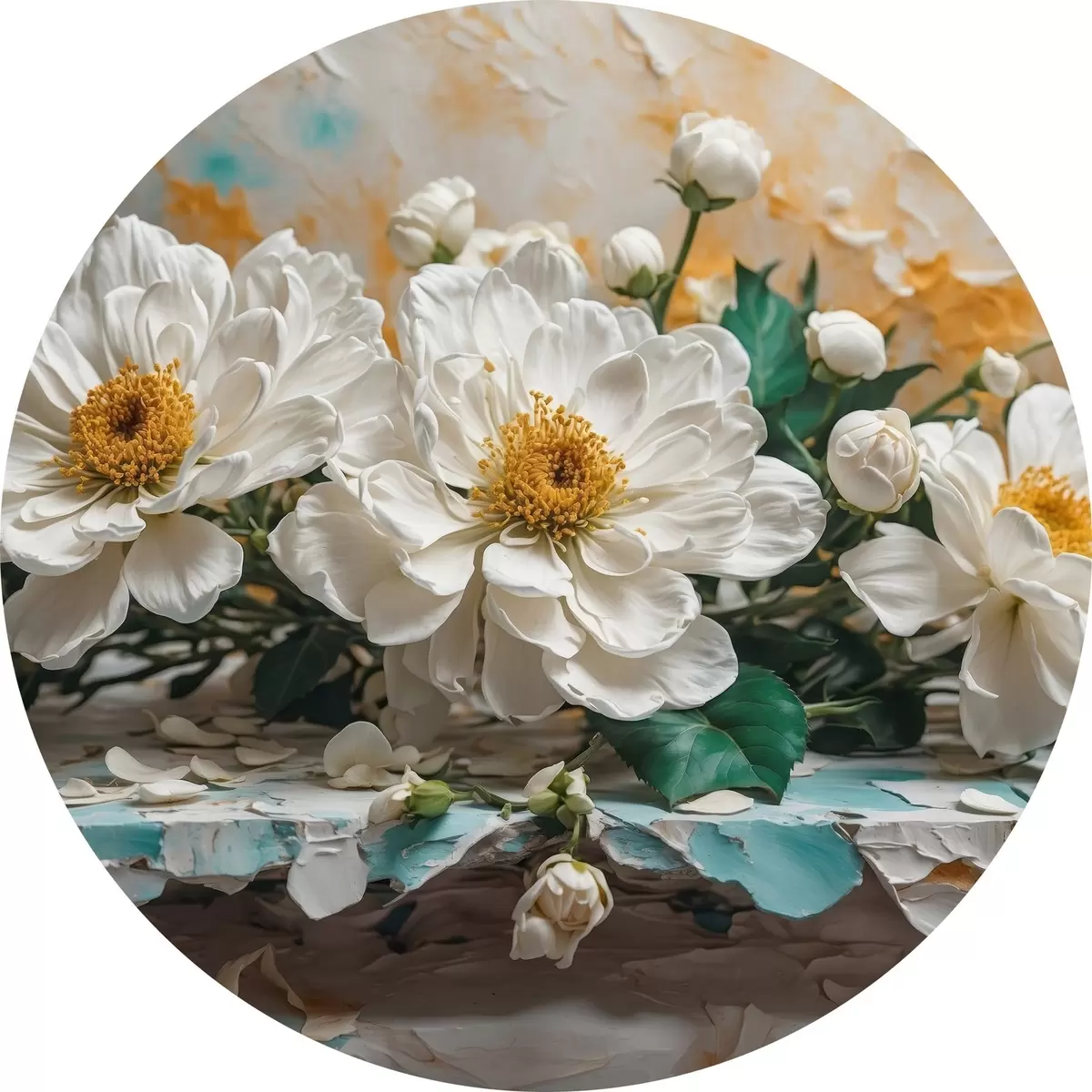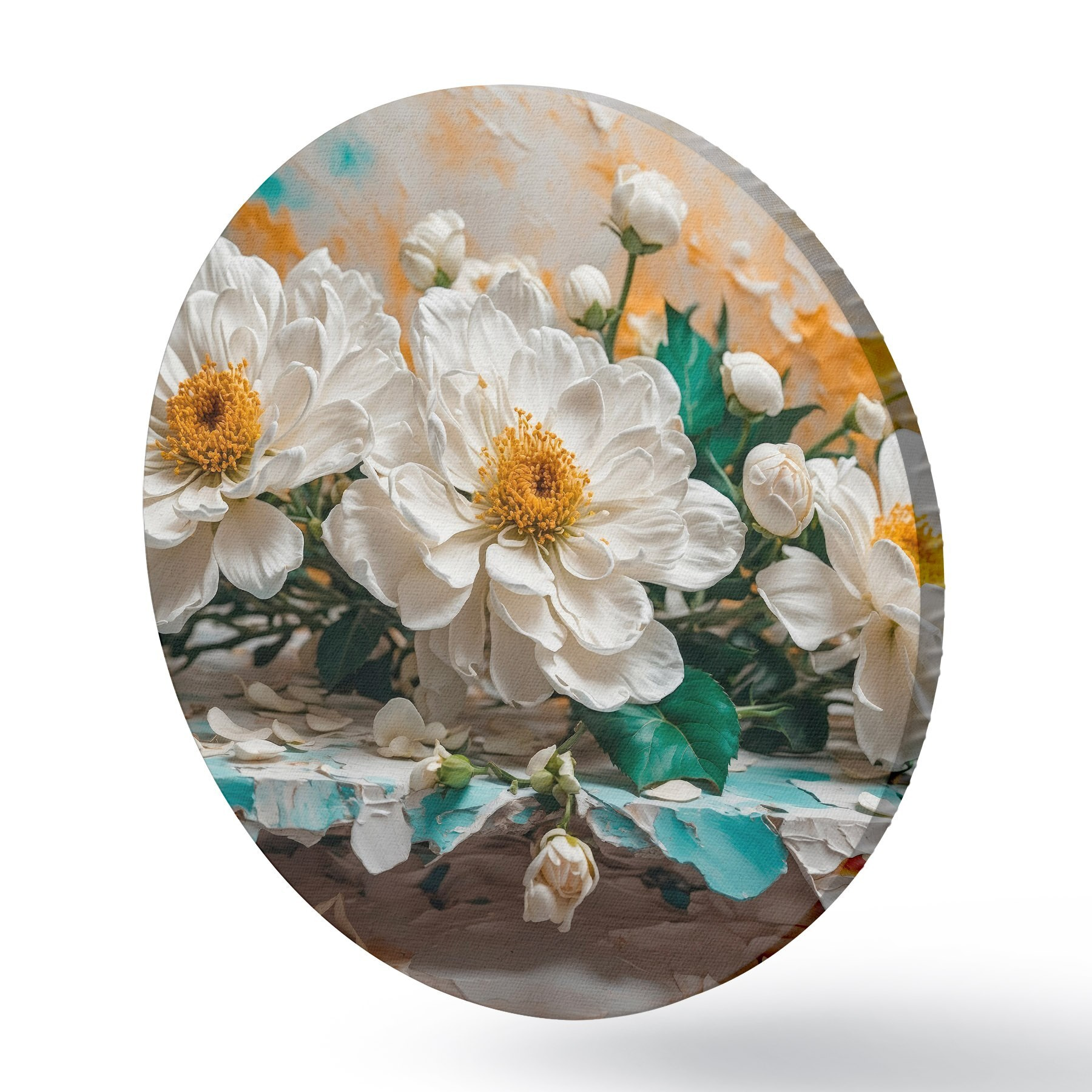 Runde Gemälde Weiße Blume auf einem Tisch auf abstraktem Hintergrund r42924