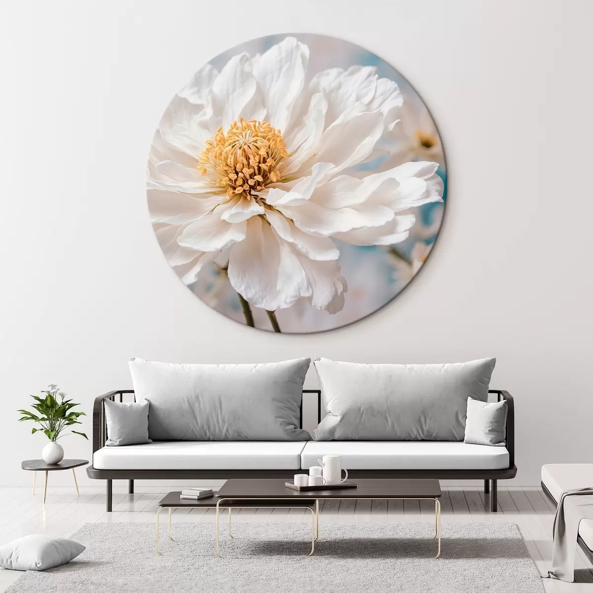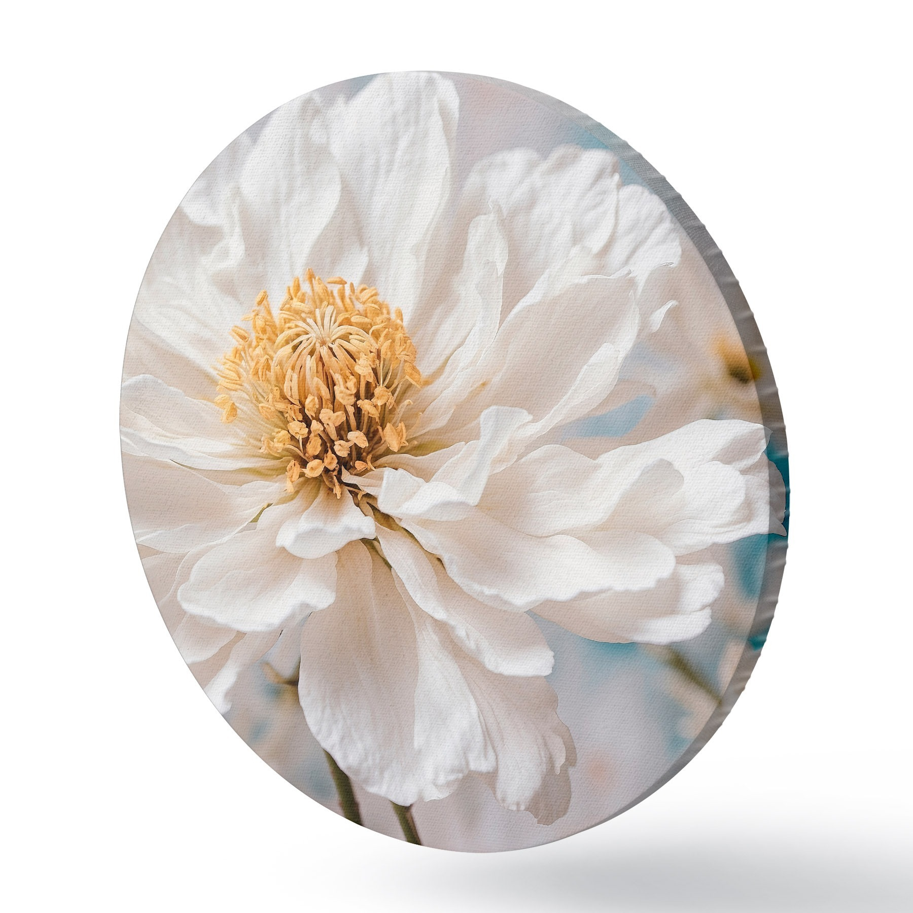 Runde Gemälde Weiße Blume auf unscharfem Hintergrund r42925