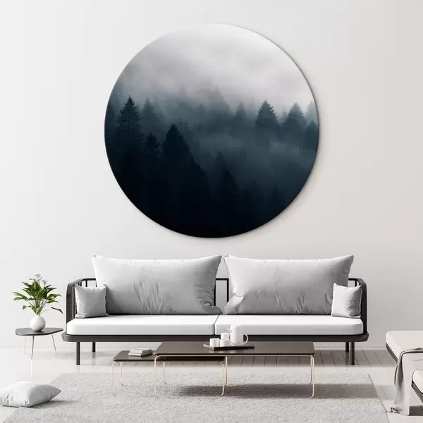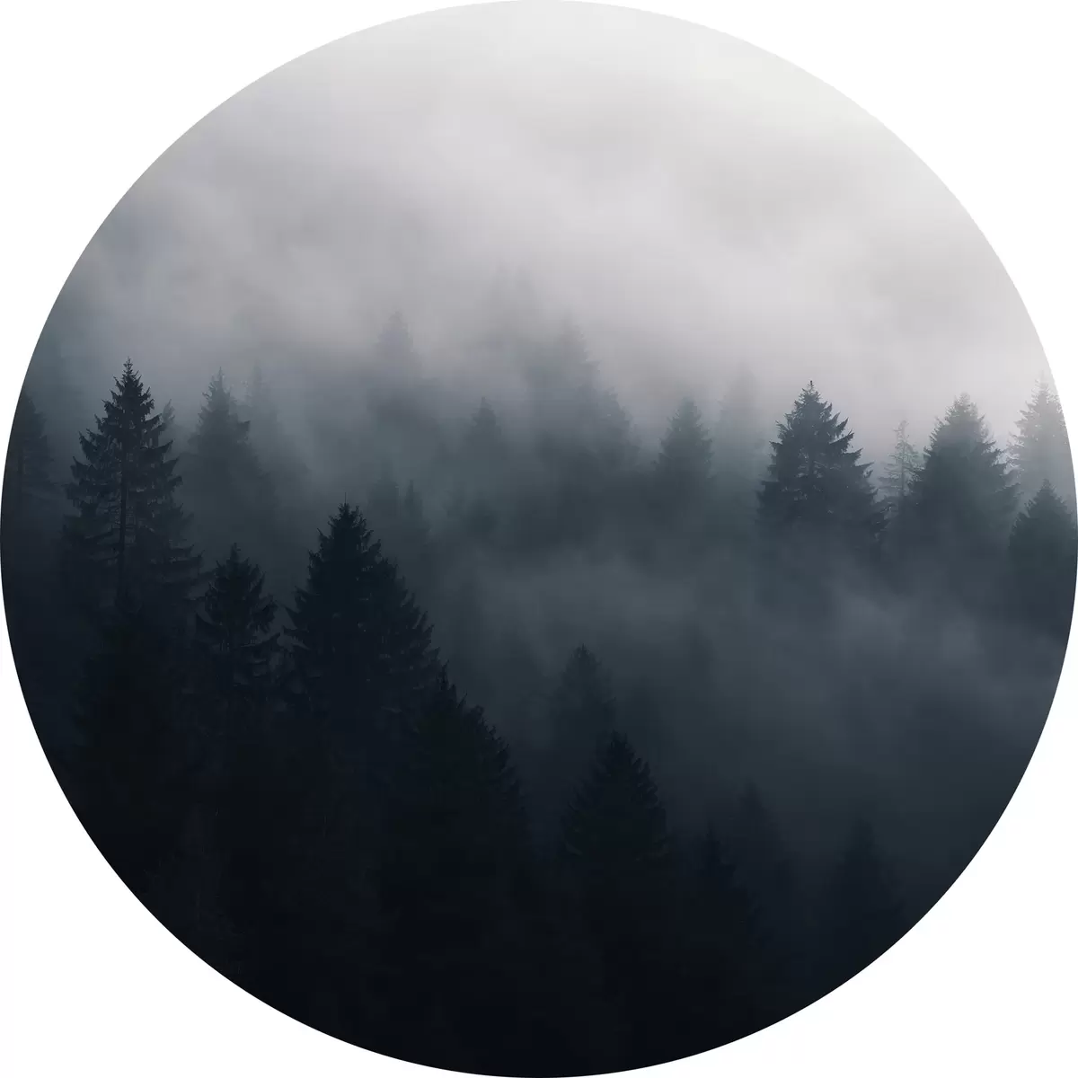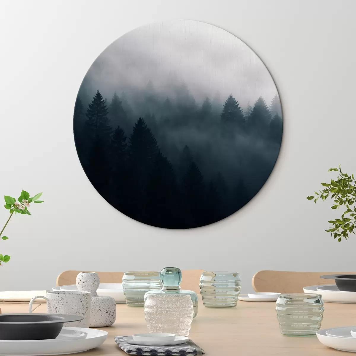 Runde Gemälde Schwarzer Vorgarten im Nebel r42926