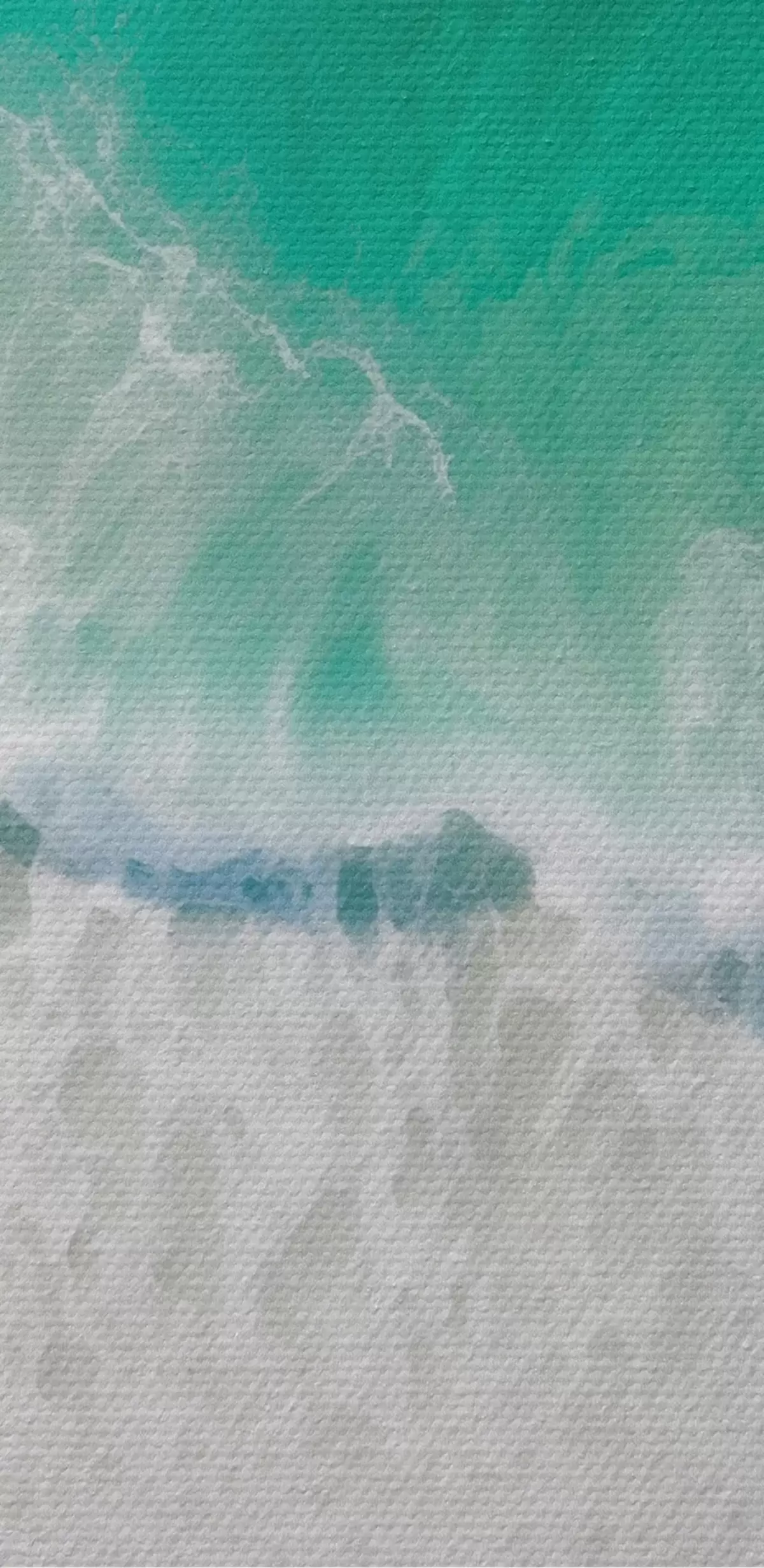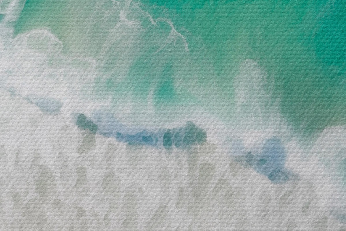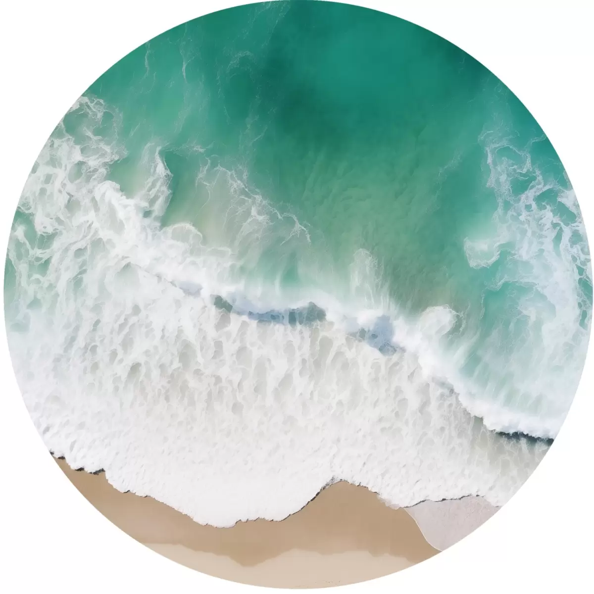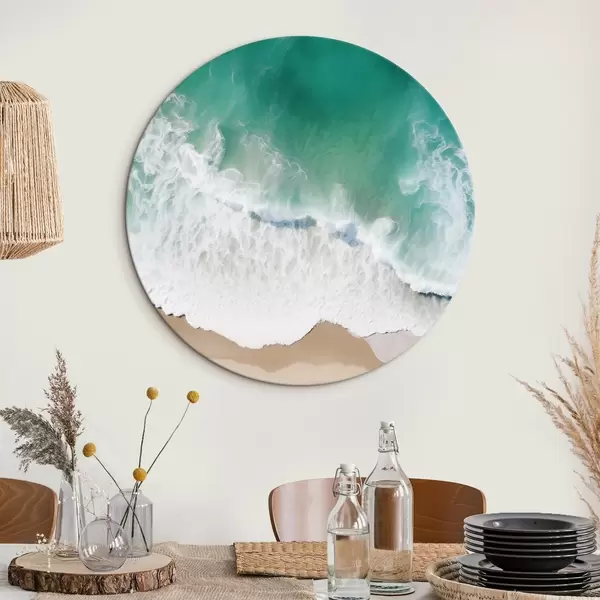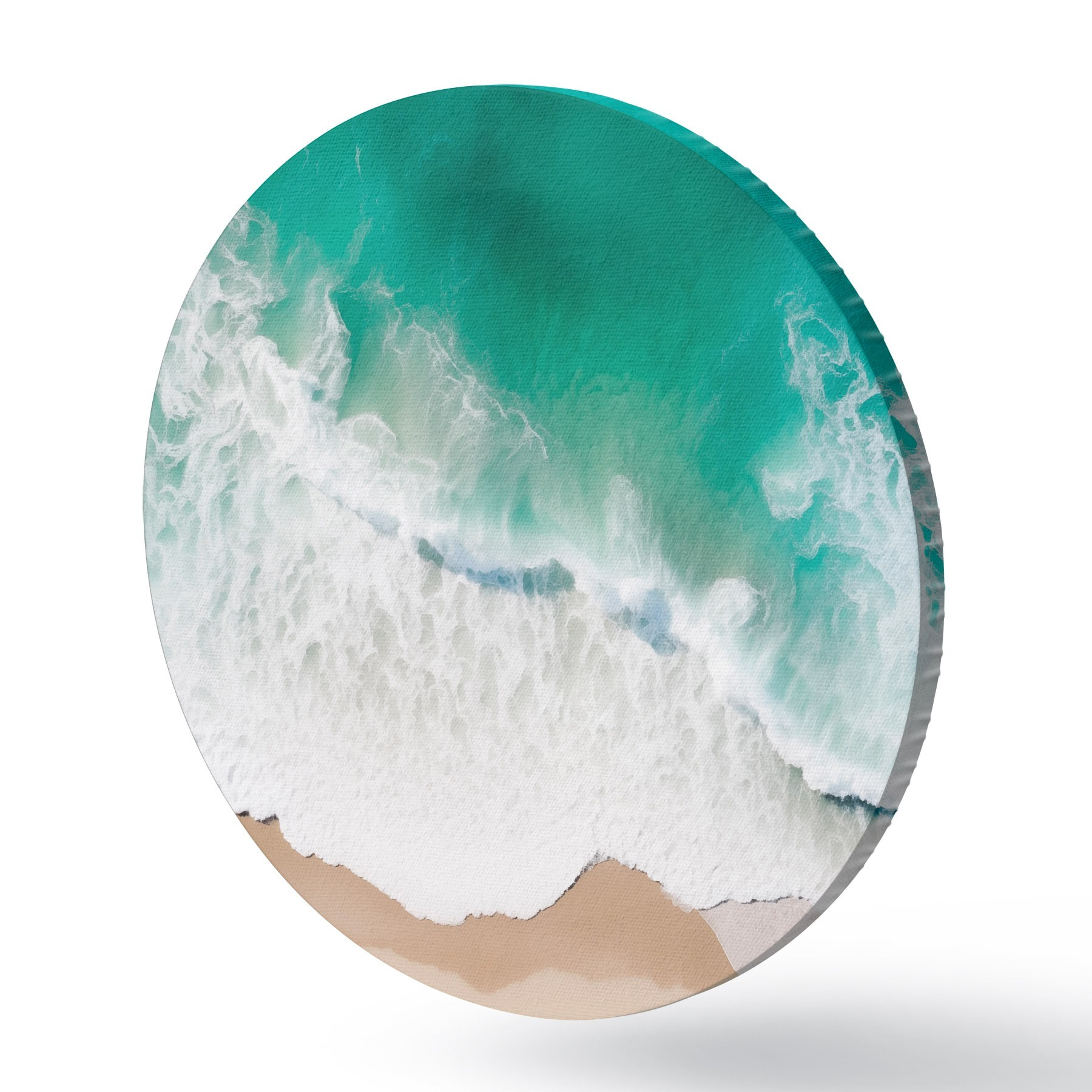 Runde Gemälde Luftaufnahme eines Küstenstreifens mit türkisfarbenen Wellen, die sanft auf den Sandstrand rollen r42930