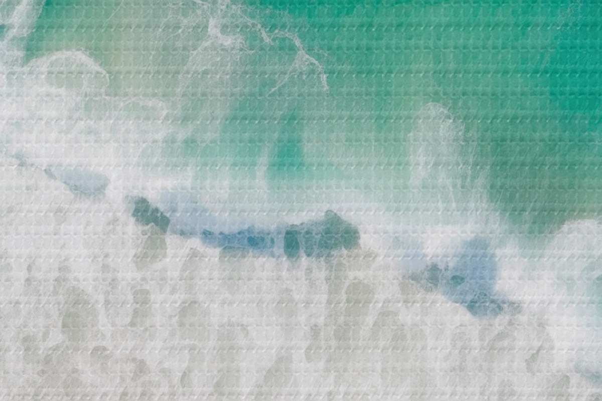 Bild Luftaufnahme eines Küstenstreifens mit türkisfarbenen Wellen, die sanft auf den Sandstrand rollen Nr r42930