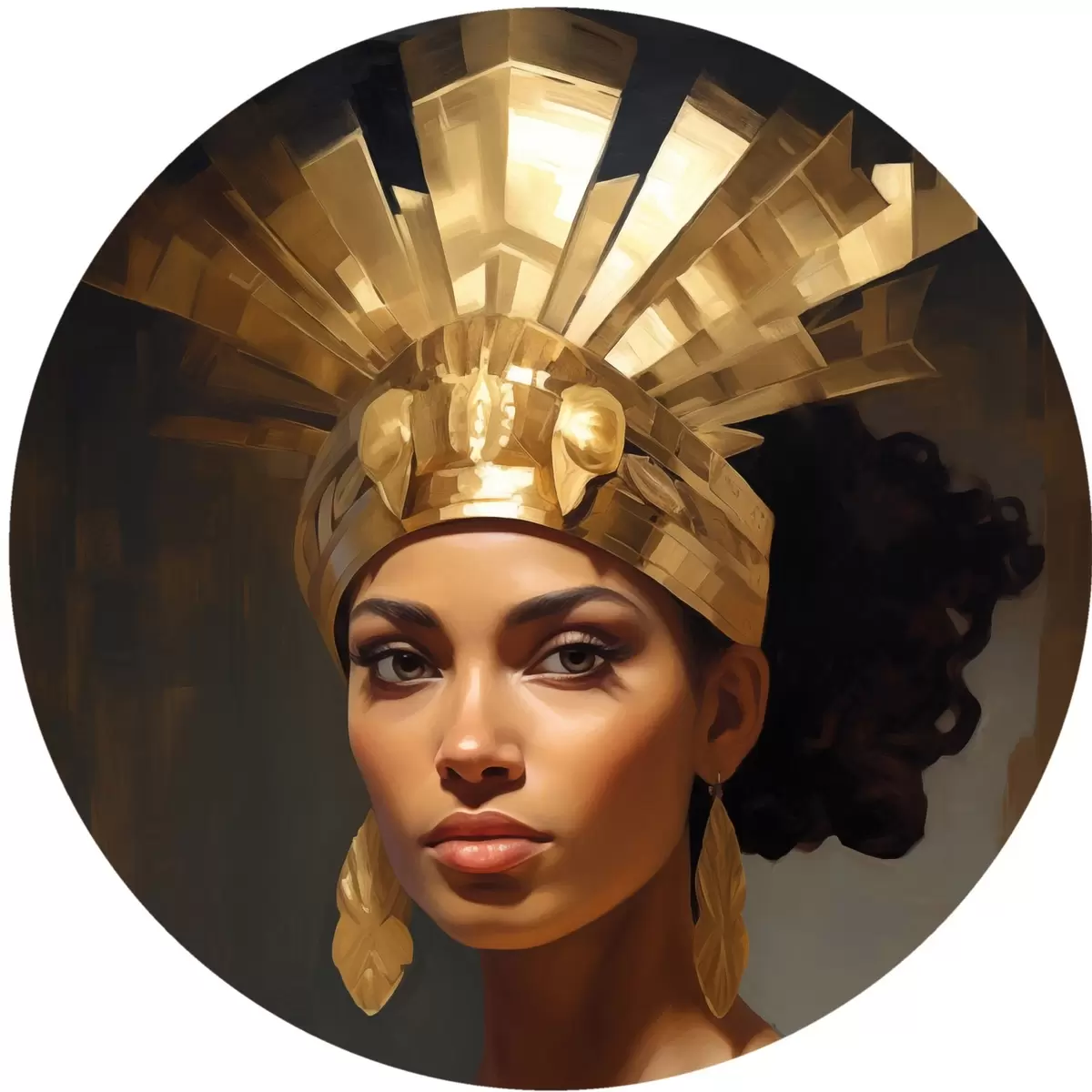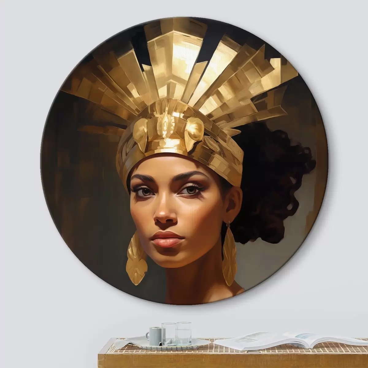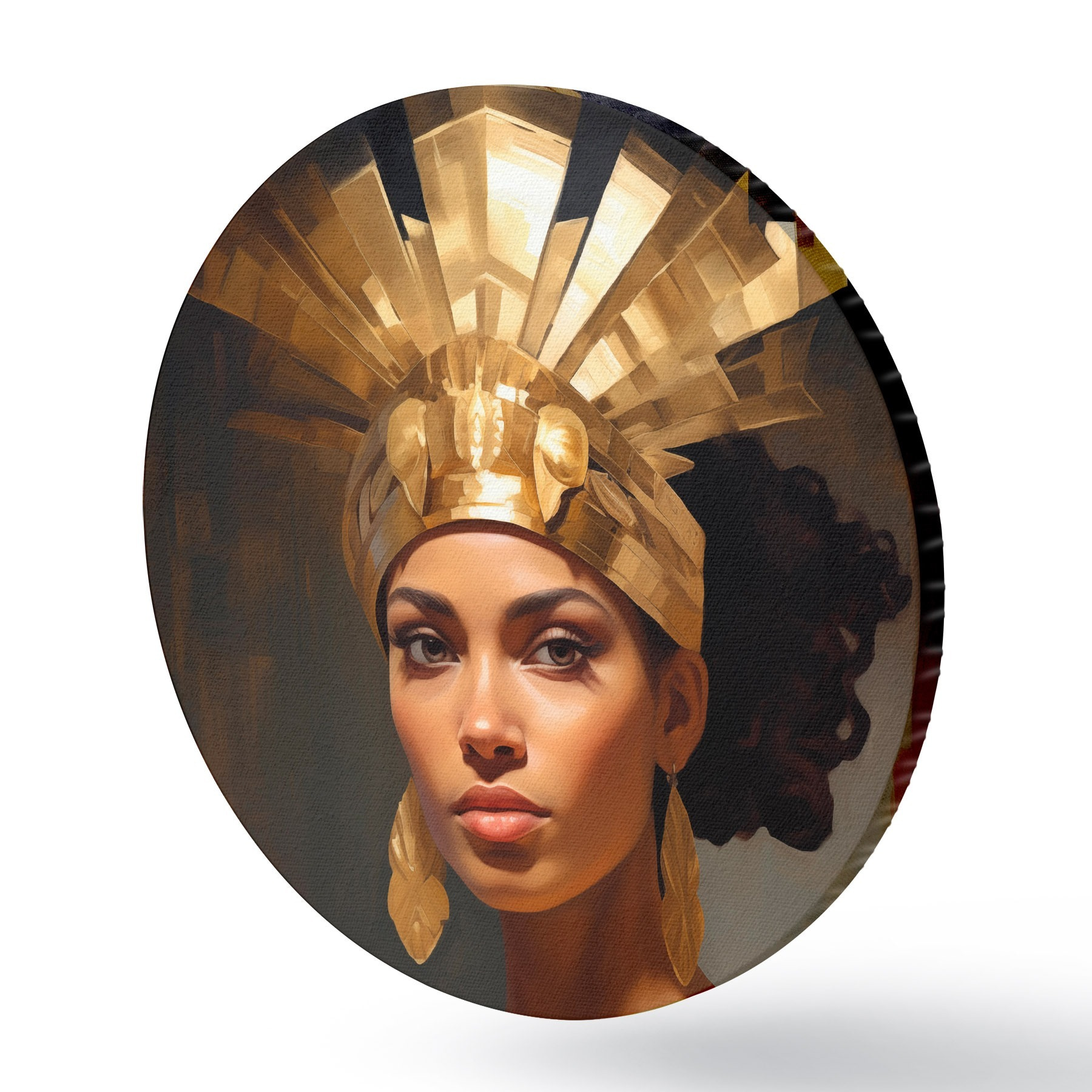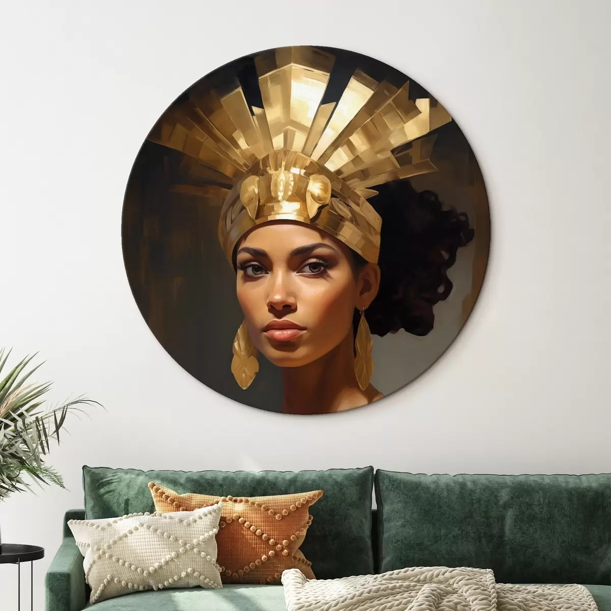 Runde Gemälde Porträt einer Frau mit majestätischem Kopfschmuck und traditionellen Ornamenten r42931