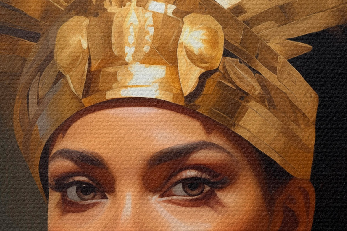 Bild Porträt einer Frau mit majestätischem Kopfschmuck und traditionellen Ornamenten Nr r42931