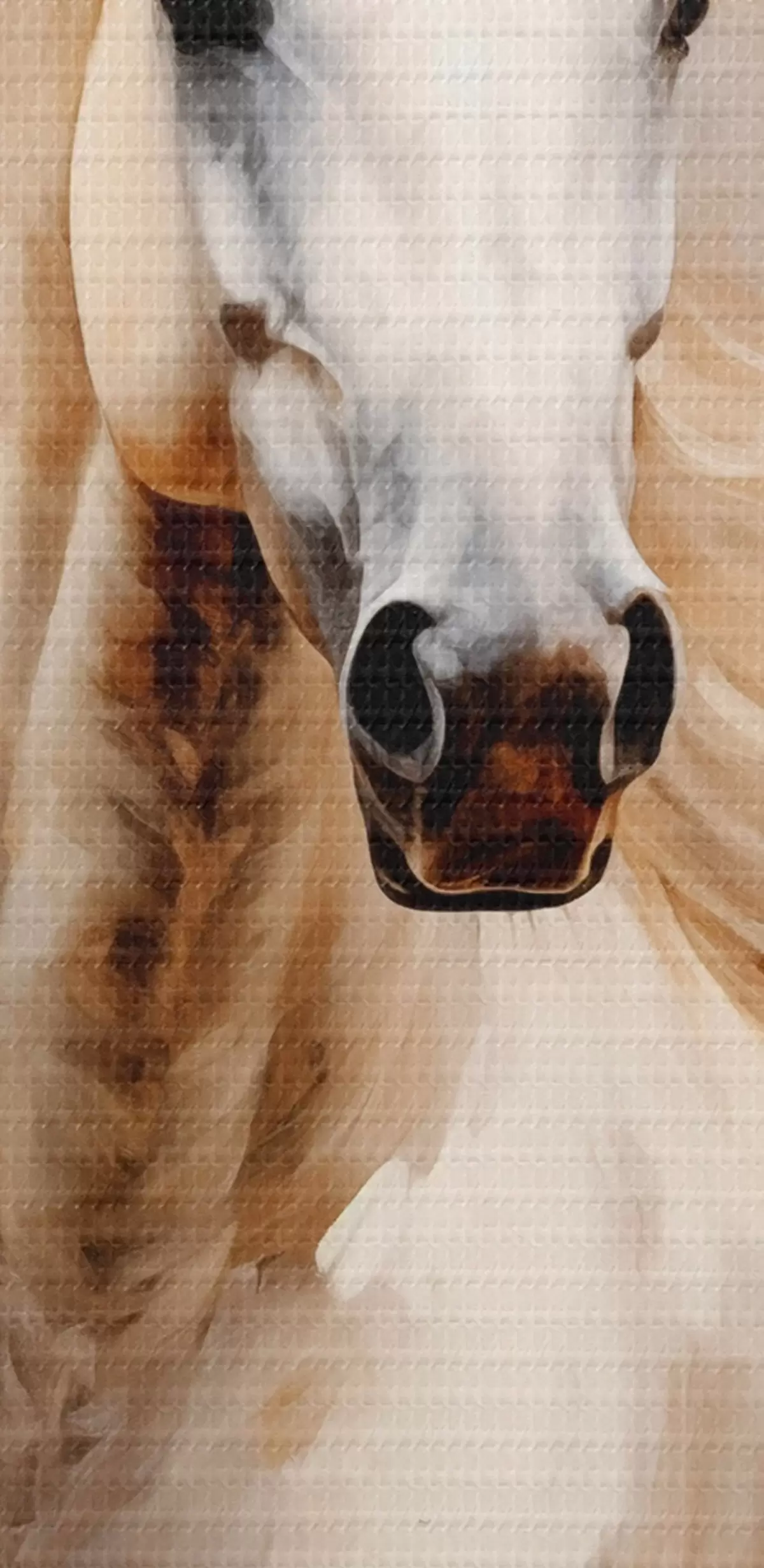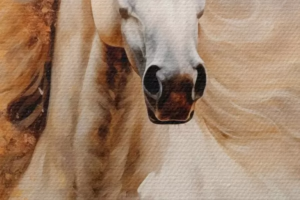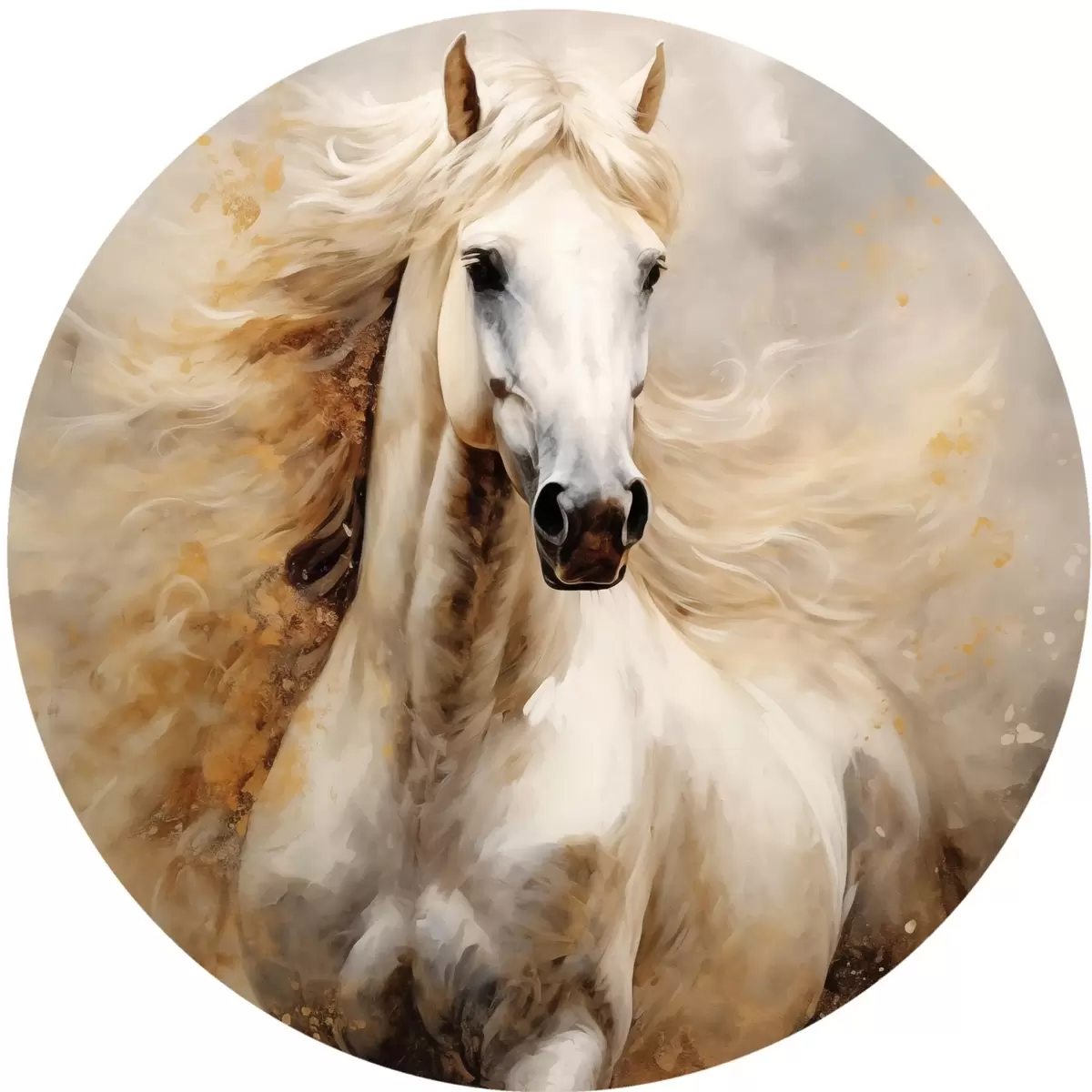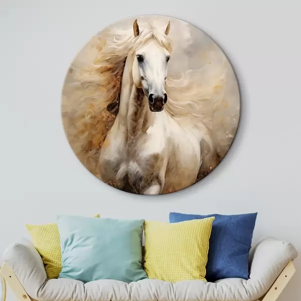 Runde Gemälde Malerisches Porträt eines weißen Pferdes in Bewegung r42932