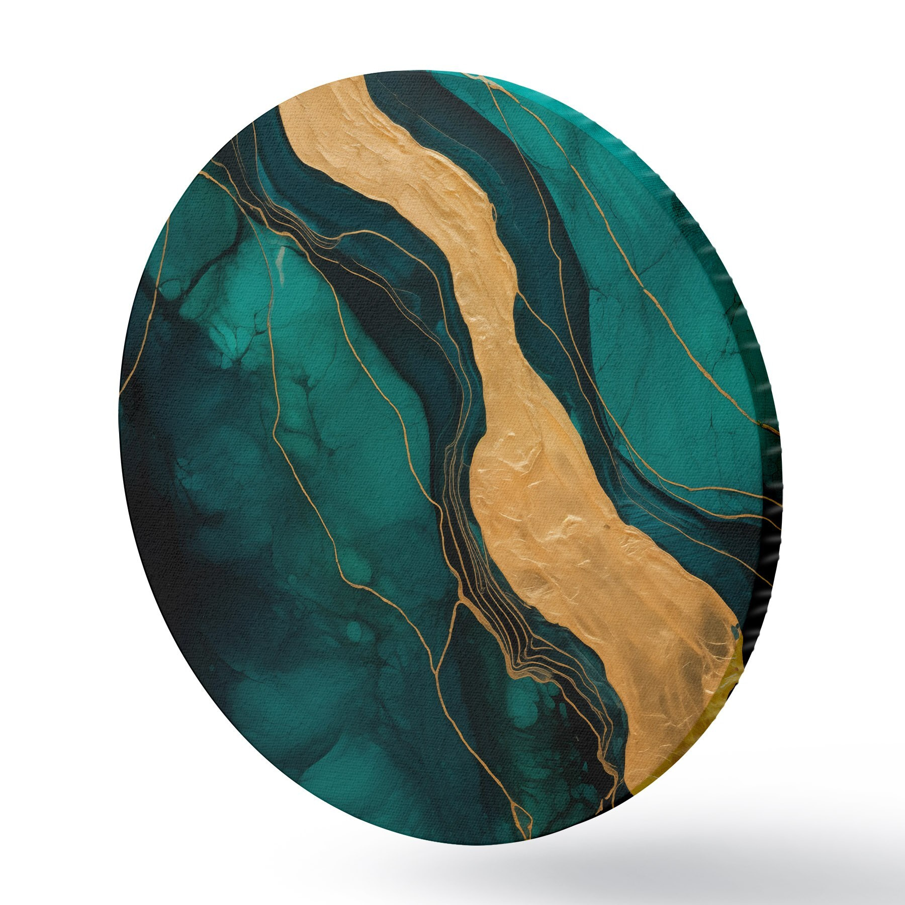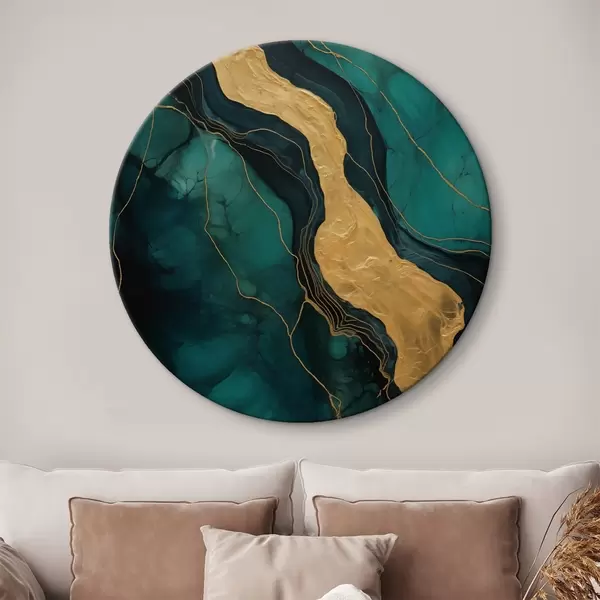 Runde Gemälde Аbstract pattern mit tiefen Grüntönen und einem warmen Kontrastelement r42934