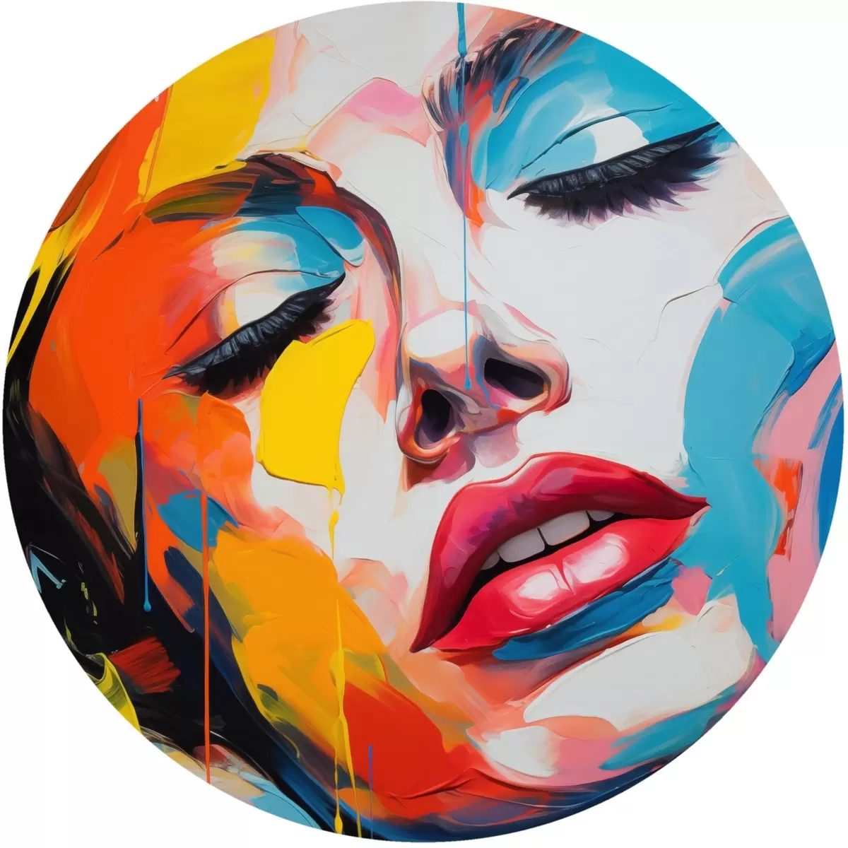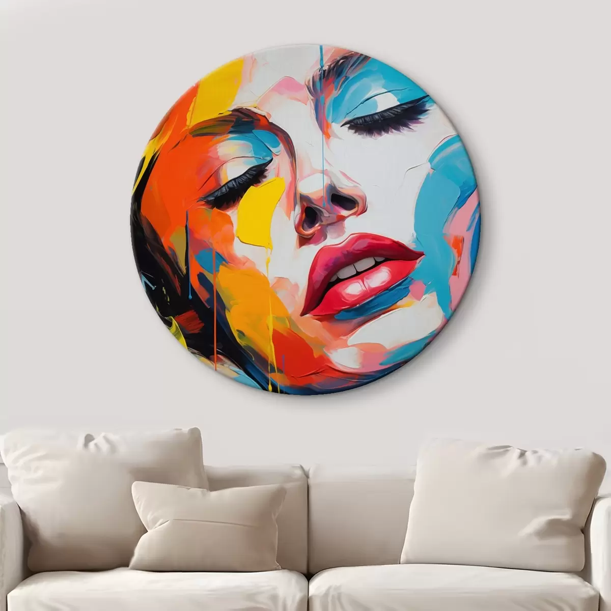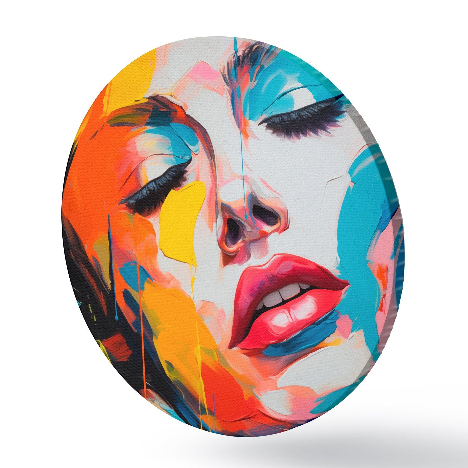 Runde Gemälde Abstraktes Porträt einer Frau in ausdrucksstarken Farben r42935