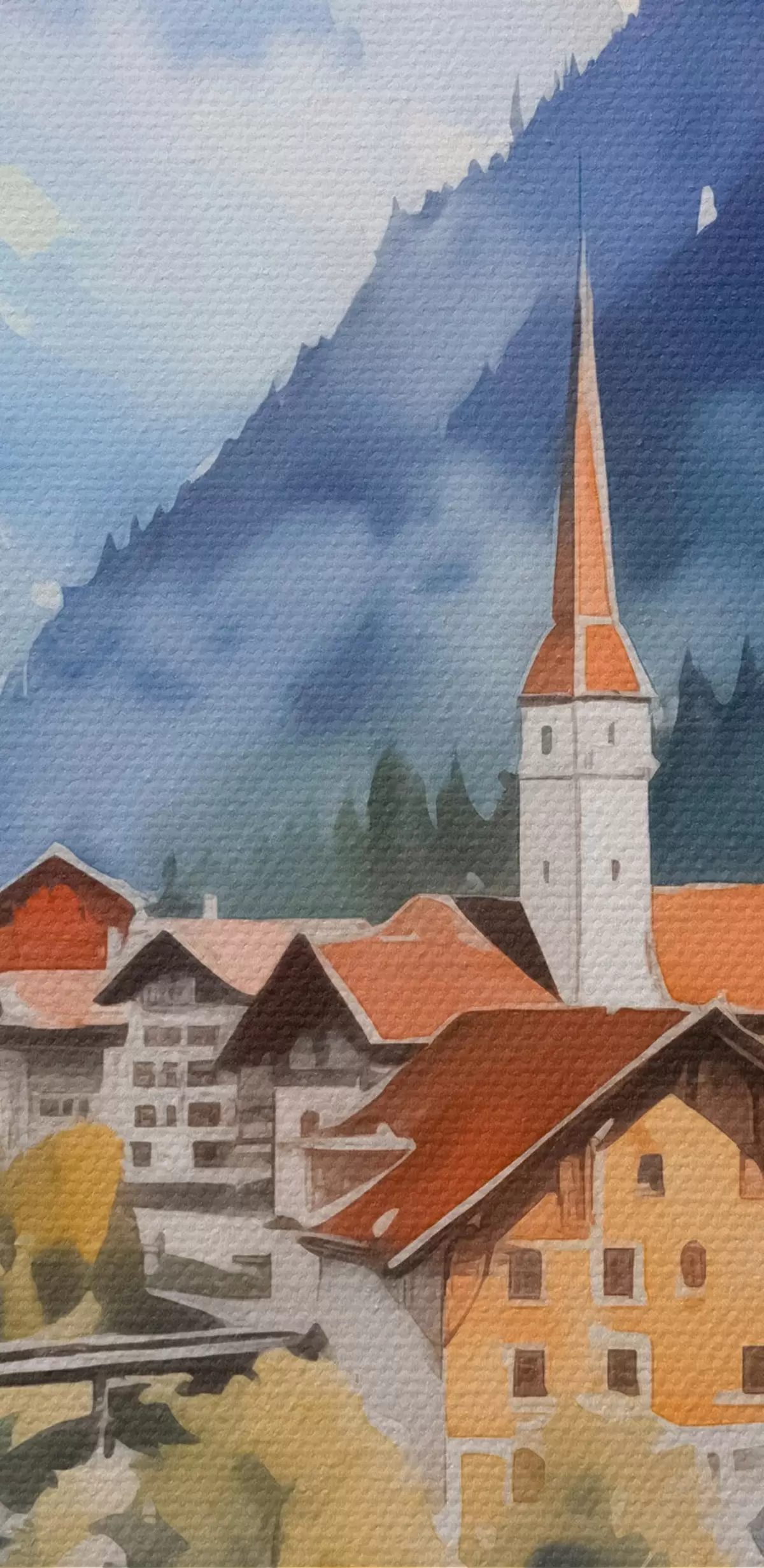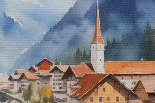 Bild Dorf in der Nähe der Berge Nachahmung Aquarell Nr r42964