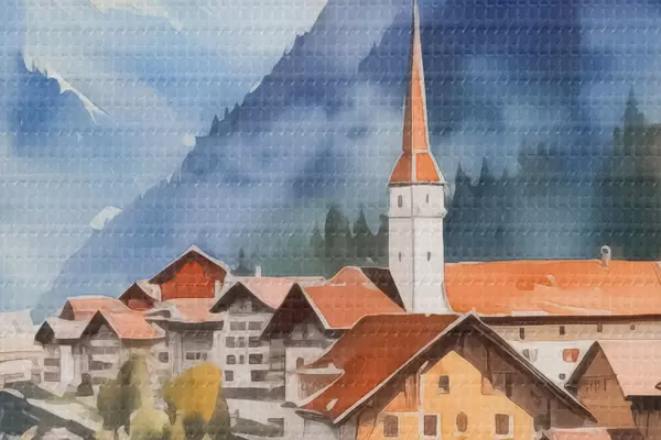Bild Dorf in der Nähe der Berge Nachahmung Aquarell Nr r42964
