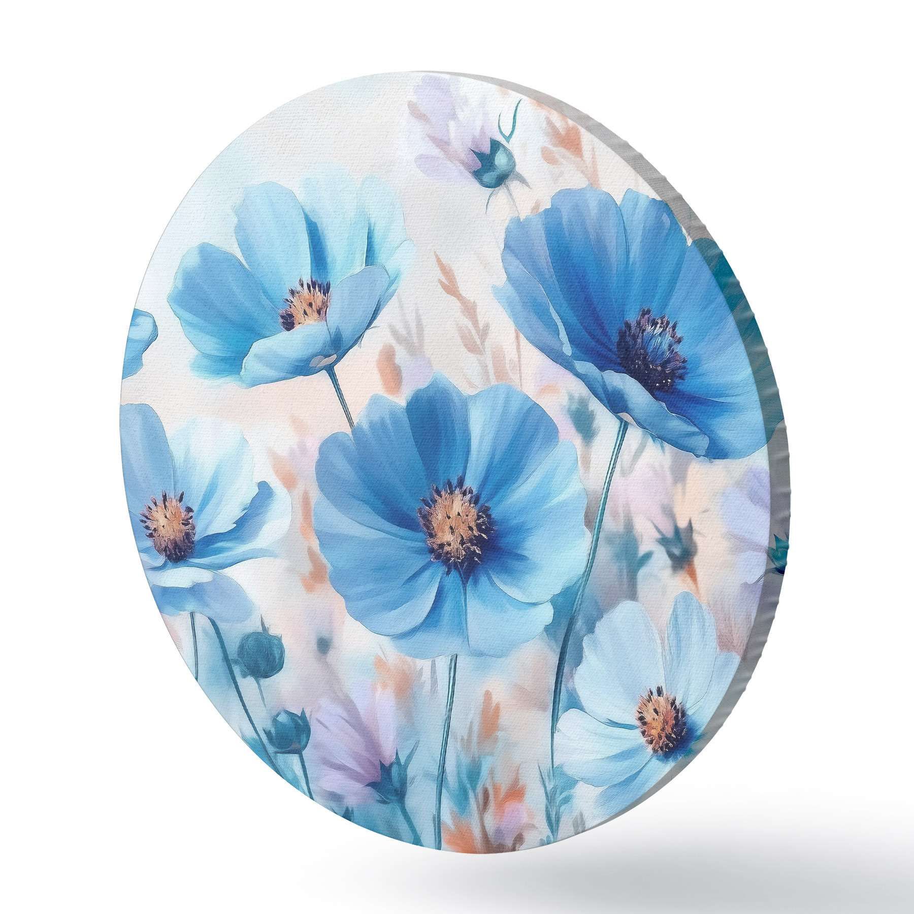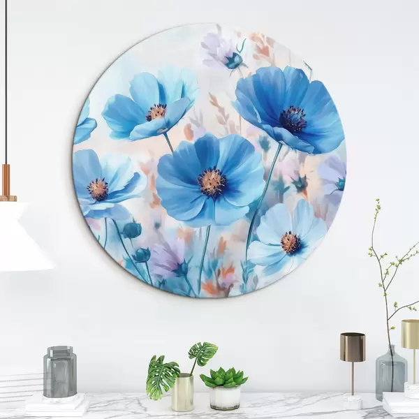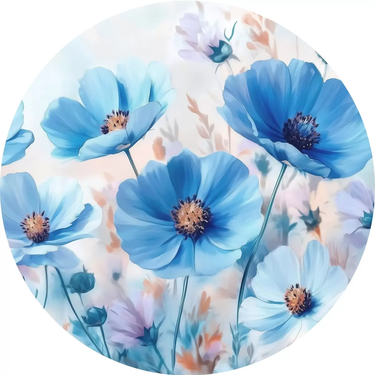 Runde Gemälde Blaue Blumen auf blauem Hintergrund r42971