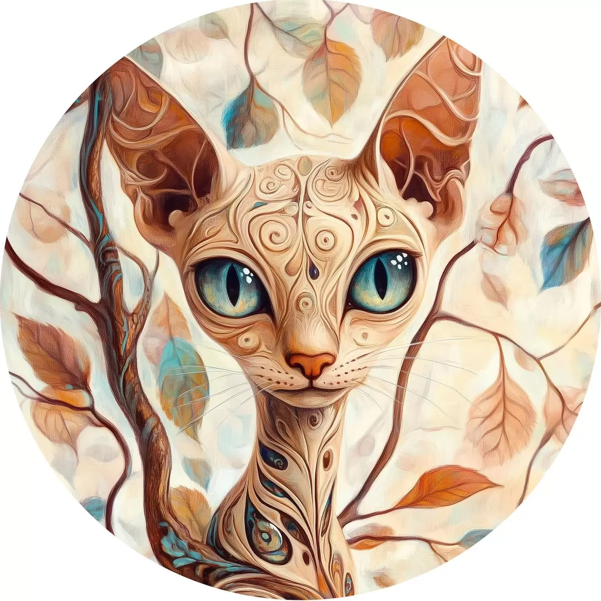 Runde Gemälde Kätzchen und Baumzweige r42988