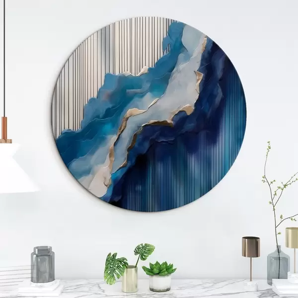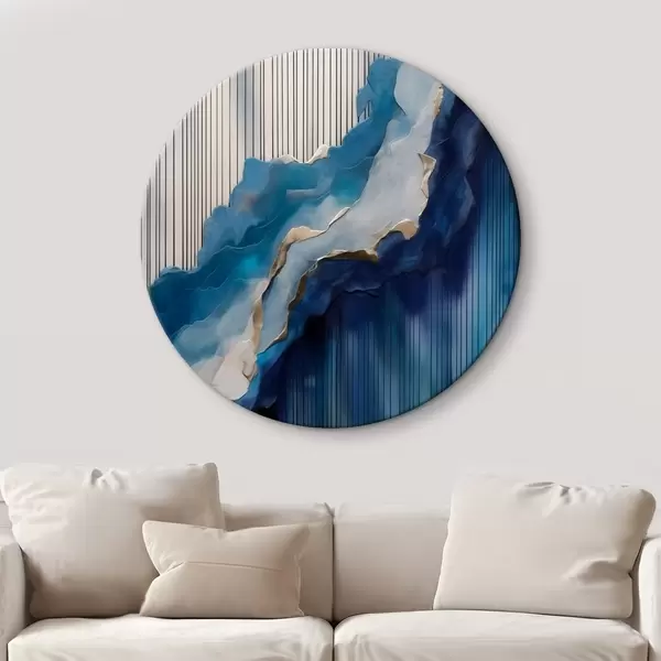 Runde Gemälde Abstrakte blaue Texturen mit Linien im Hintergrund r43002