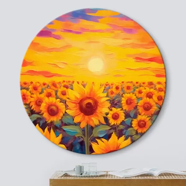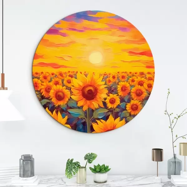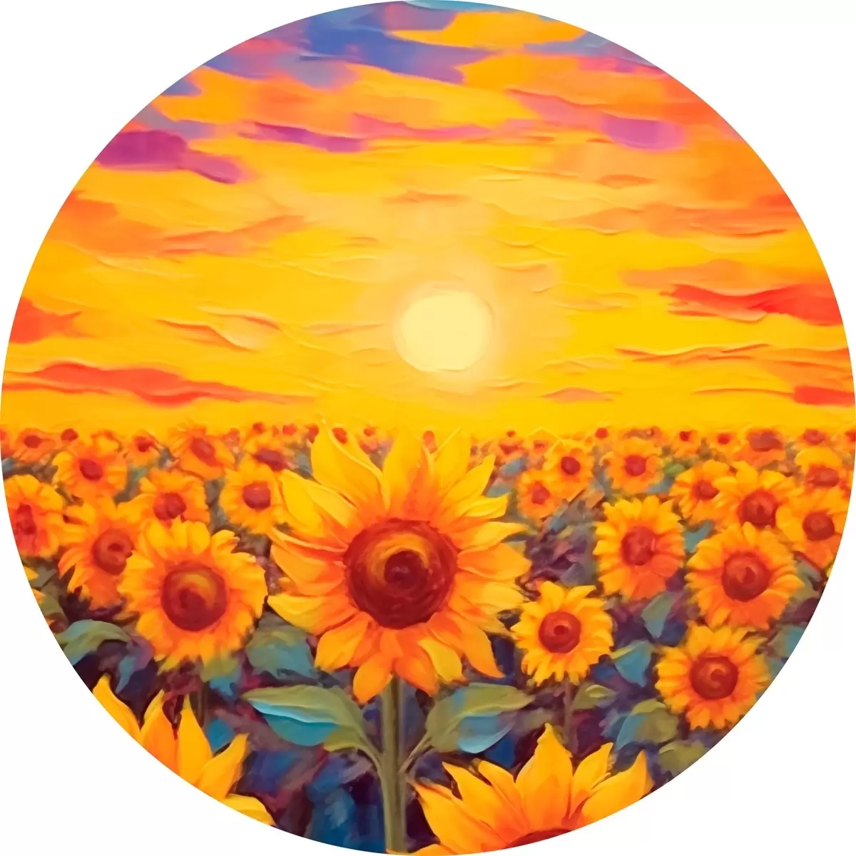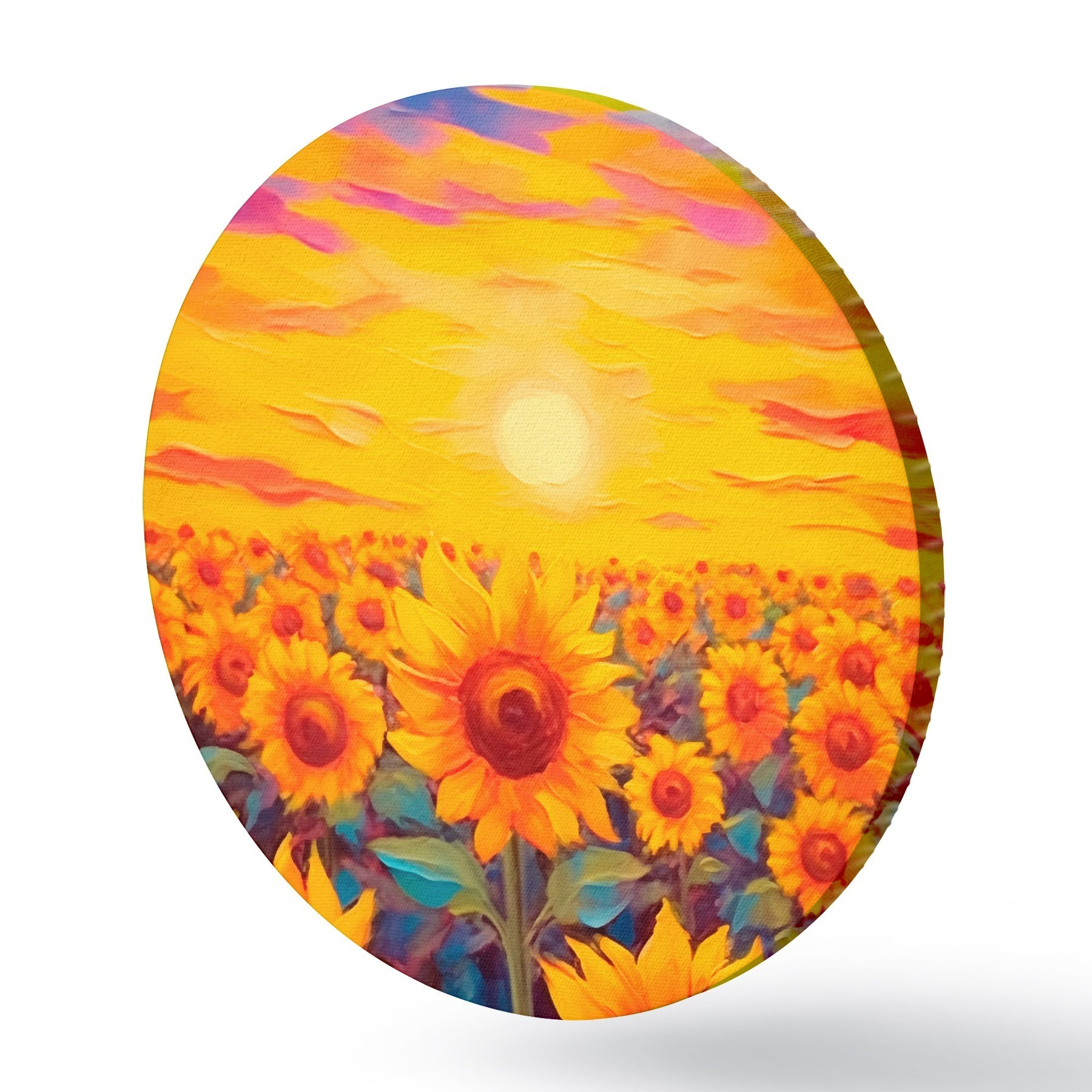 Runde Gemälde Sonnenblumenfeld bei Sonnenuntergang r43010
