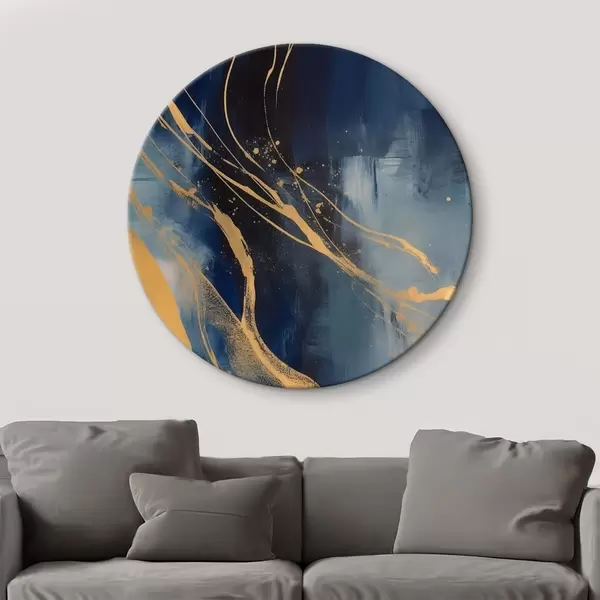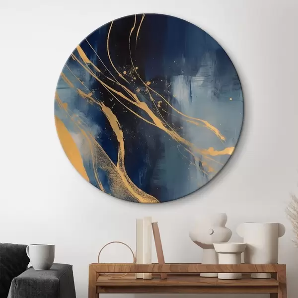 Runde Gemälde Abstraktion in Blau- und Gelbtönen r43014