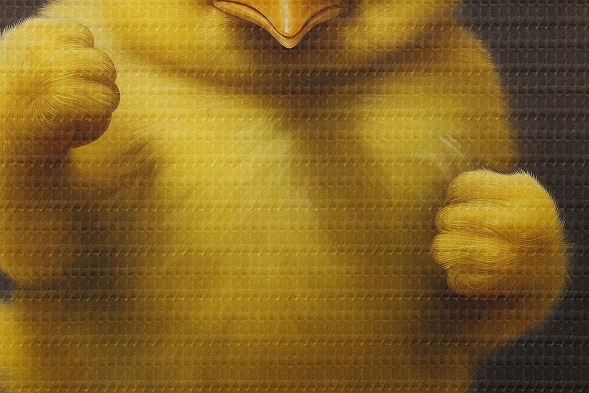 Um die Leinwand auf Keilrahmen zu spannen, ohne das Bild zu beschädigen, verwenden wir ein gespiegeltes Bild.