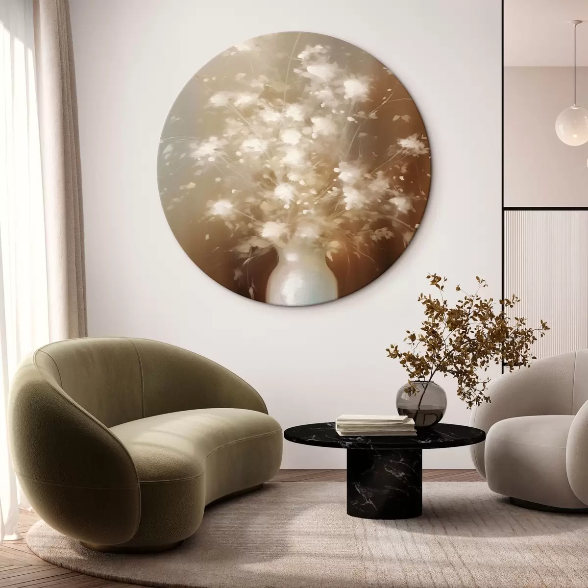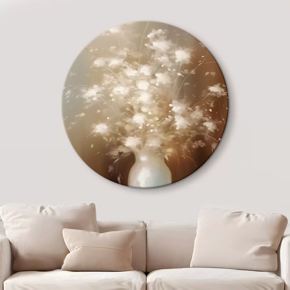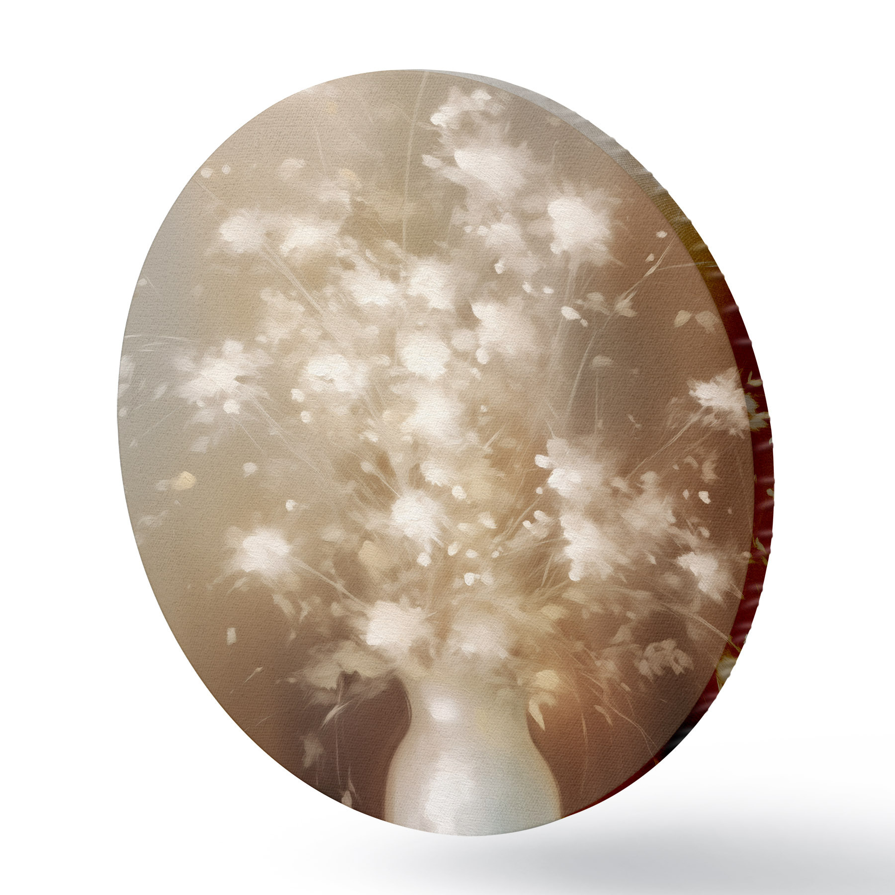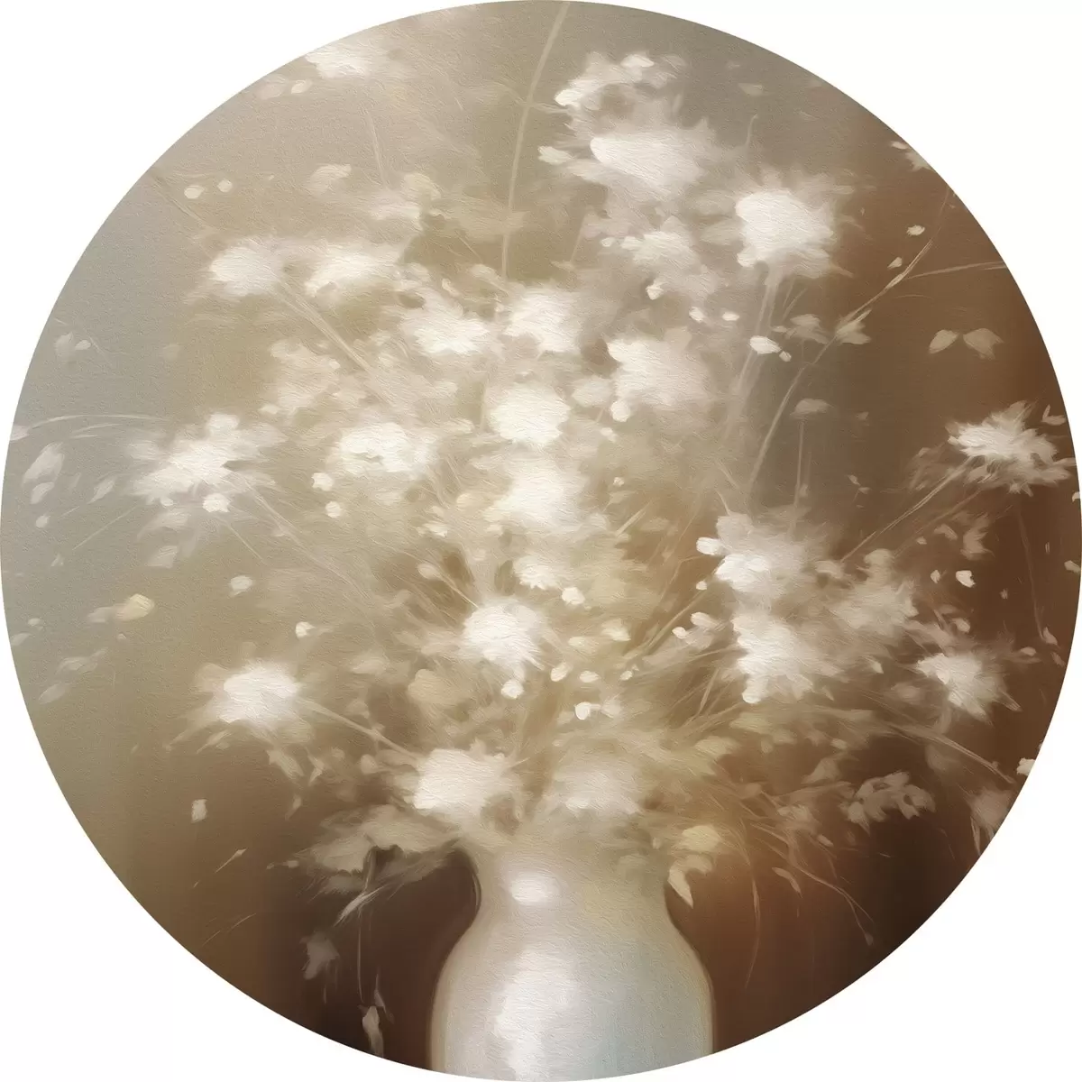 Runde Gemälde Vase mit weißen Blumen Pflanzen r43039