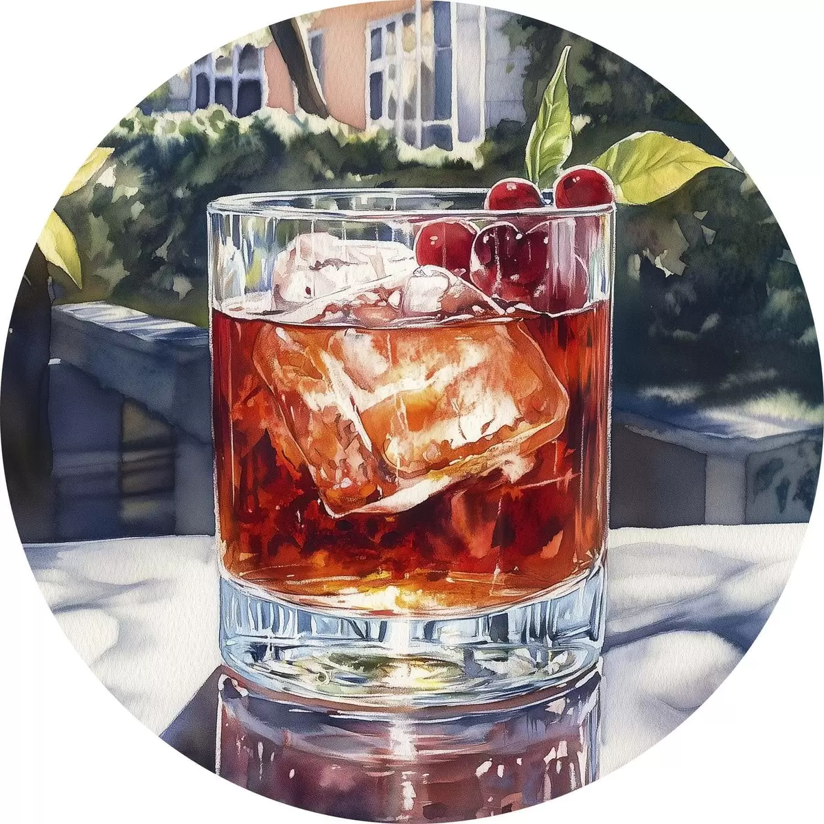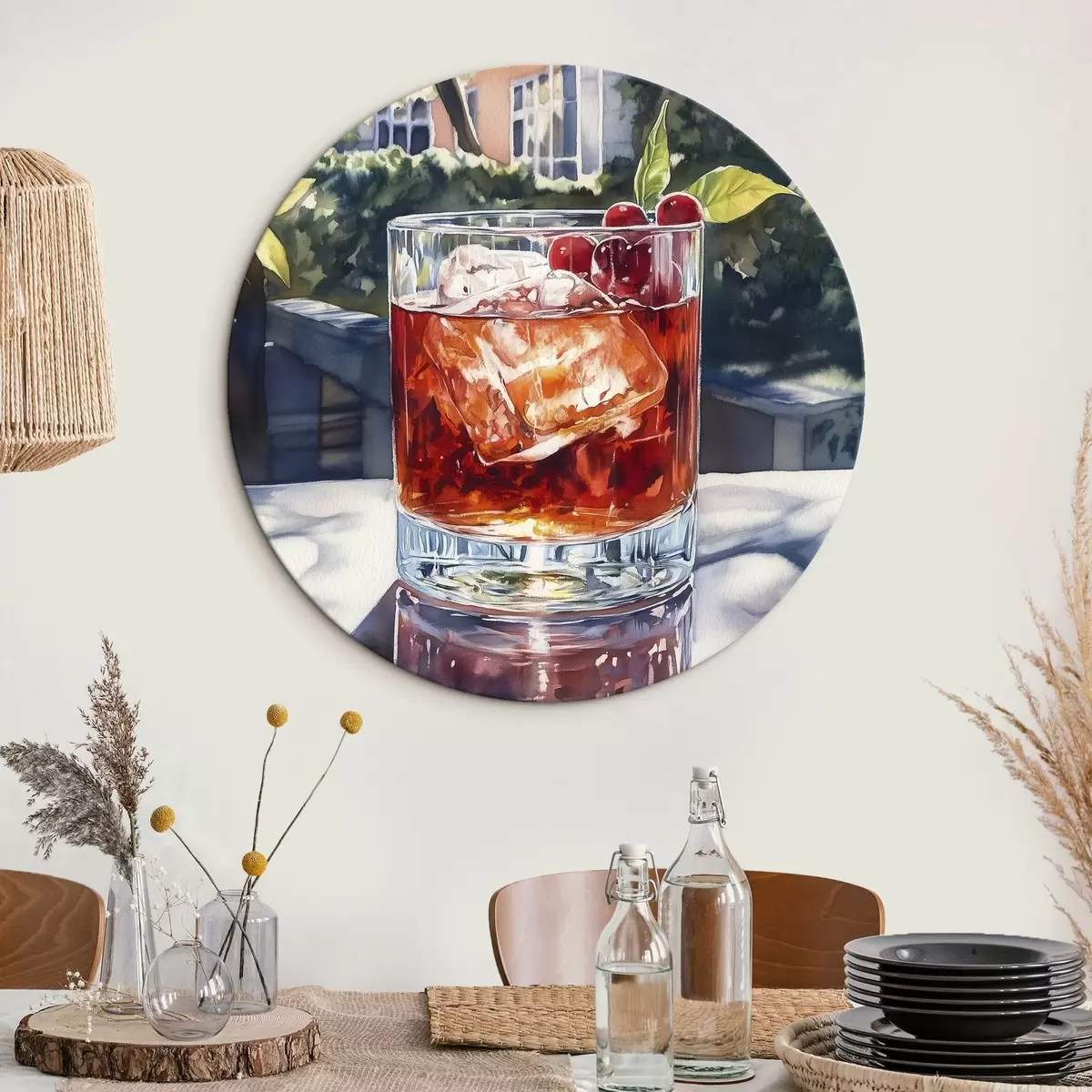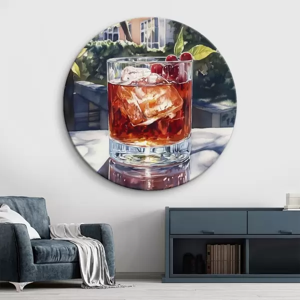 Runde Gemälde Cocktail mit Beeren, Aquarell-Stil, ästhetische Stadt, Sommer Natur r43059