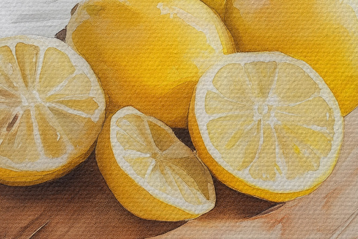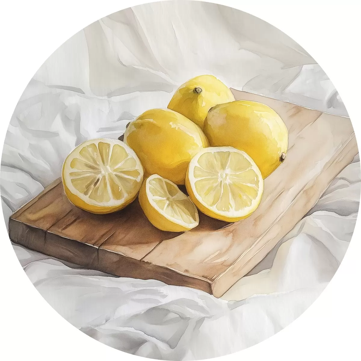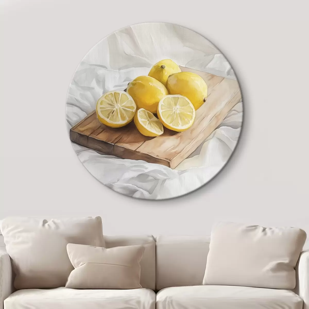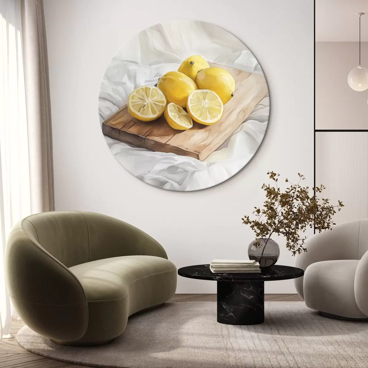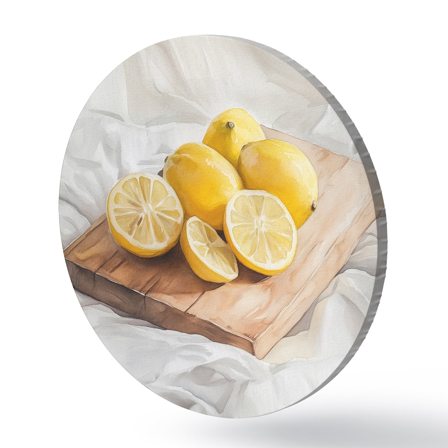 Runde Gemälde Ästhetische Zitronen auf dem Holzbrett, Heimdekoration, natürliche Beleuchtung r43062