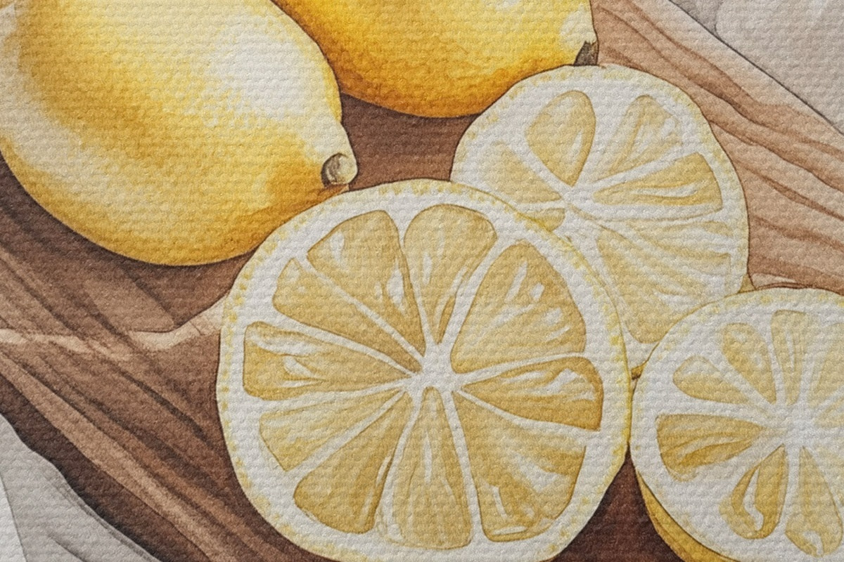 Bild Zitronen auf dem Holzbrett, Aquarell, rustikaler Stil Nr r43064