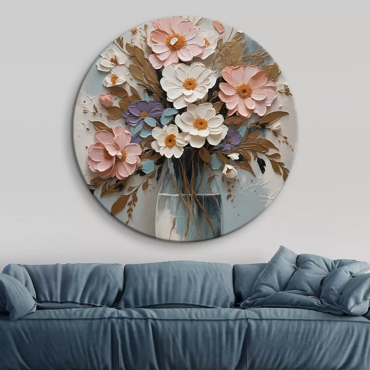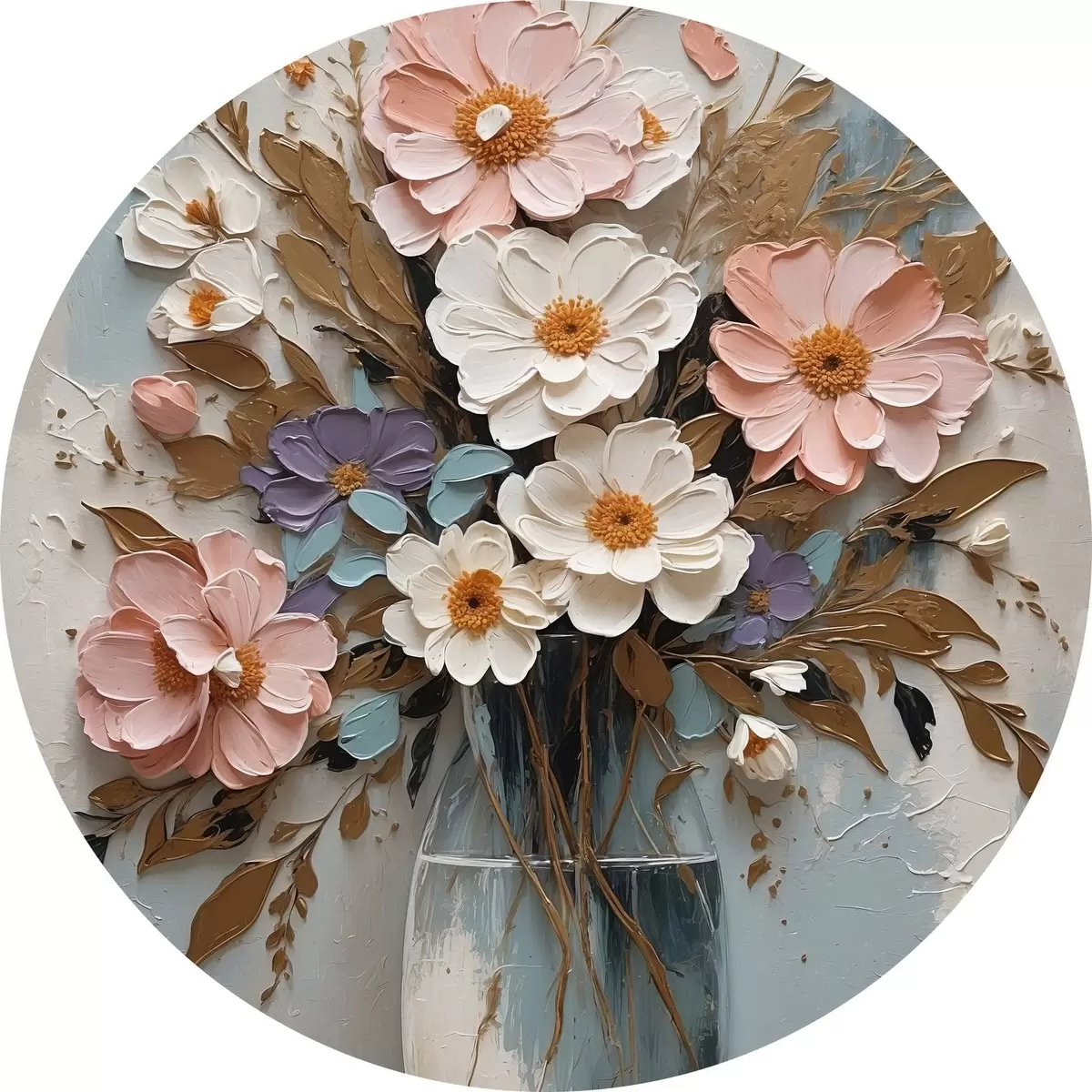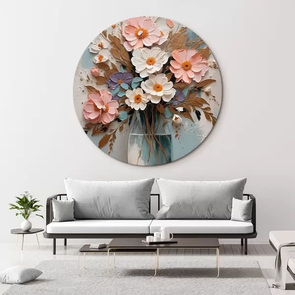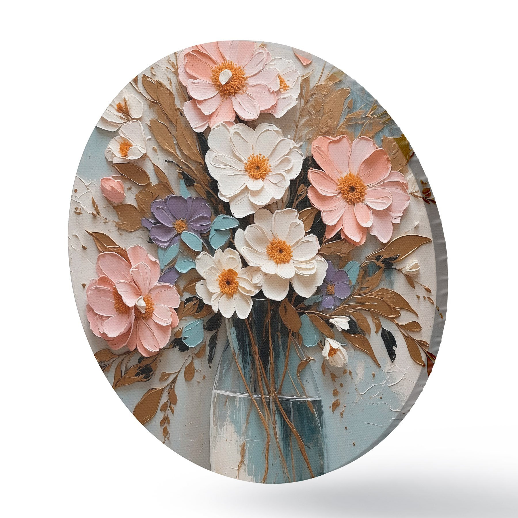 Runde Gemälde Rosa und weiße Blumen in einer transparenten Vase r43089