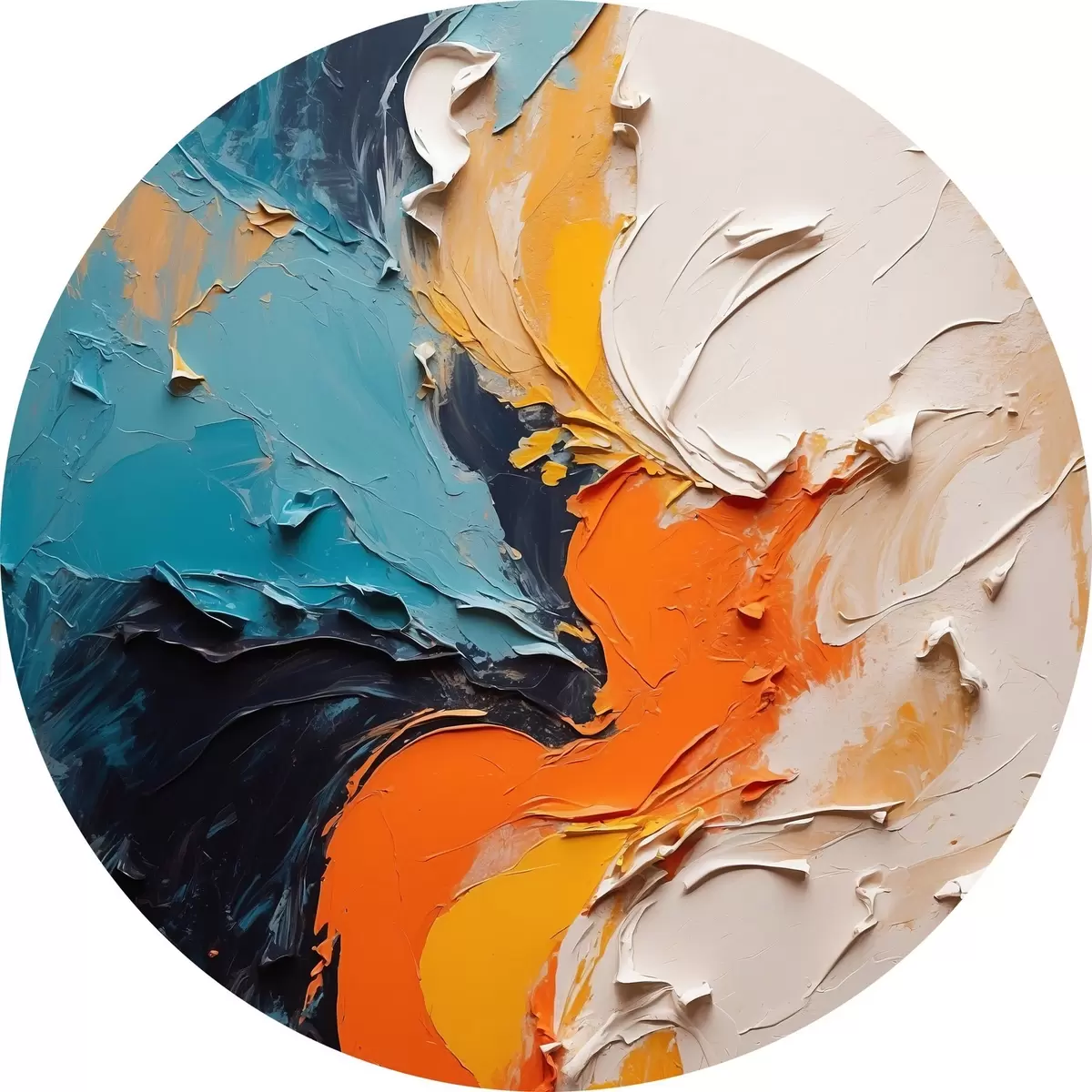 Runde Gemälde Abstrakte Malerei in Ölmalerei Stil mit orange, blau und weißen Farben r43094