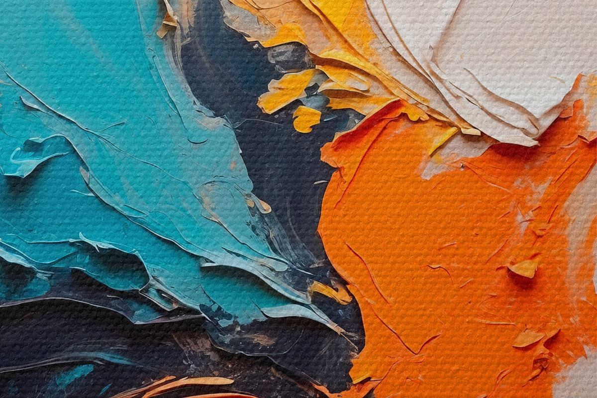 Bild Abstrakte Malerei in Ölmalerei Stil mit orange, blau und weißen Farben Nr r43094