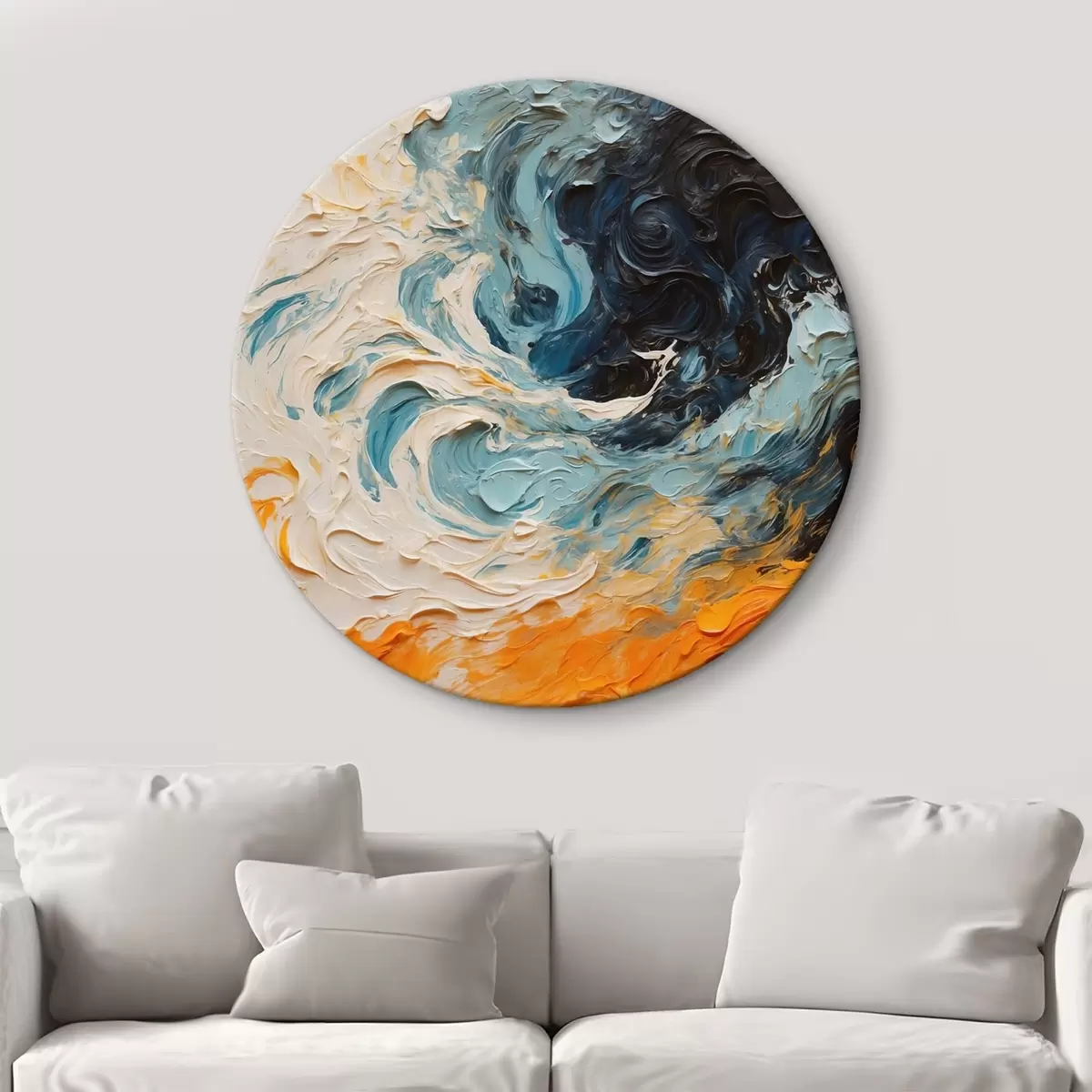 Runde Gemälde Abstraktes tobendes Meer im Stil der Ölmalerei r43095