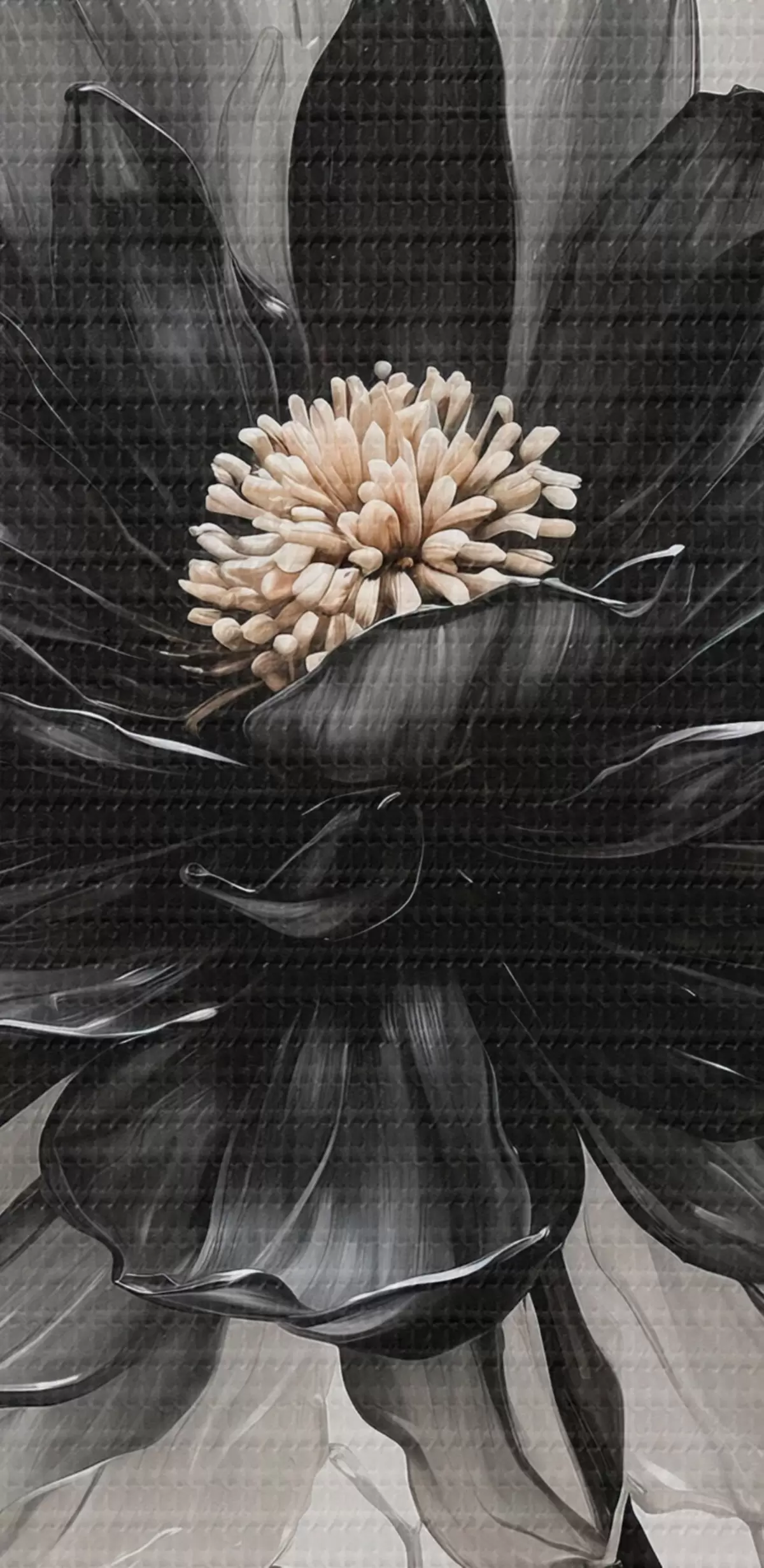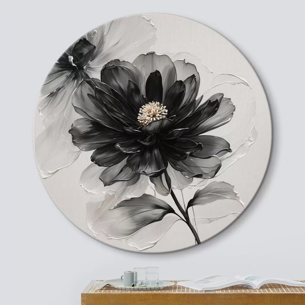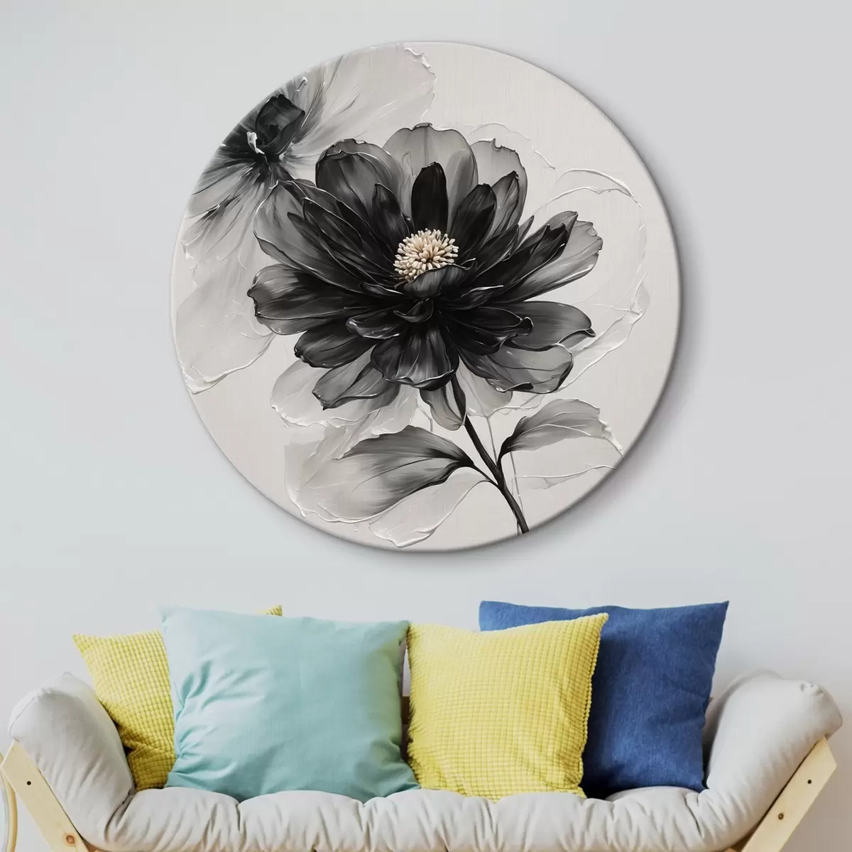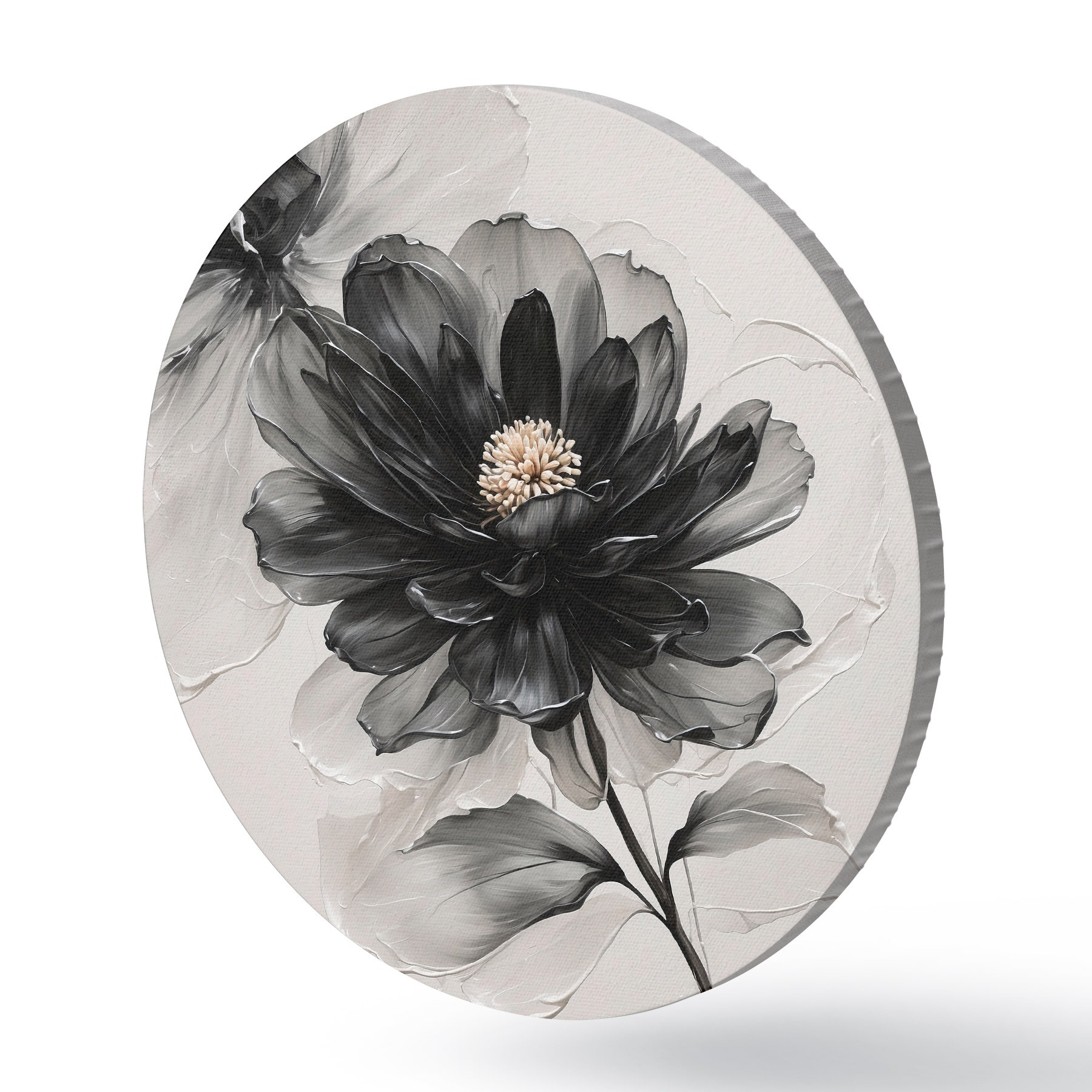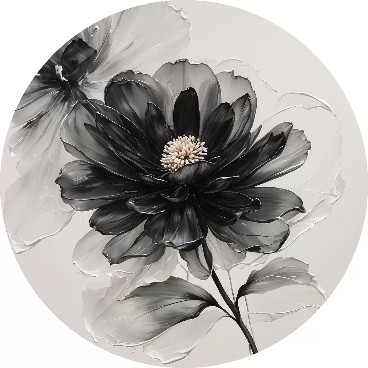 Runde Gemälde Schwarze transparente Blume auf weißem Hintergrund r43099