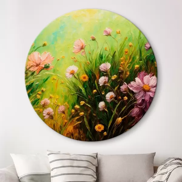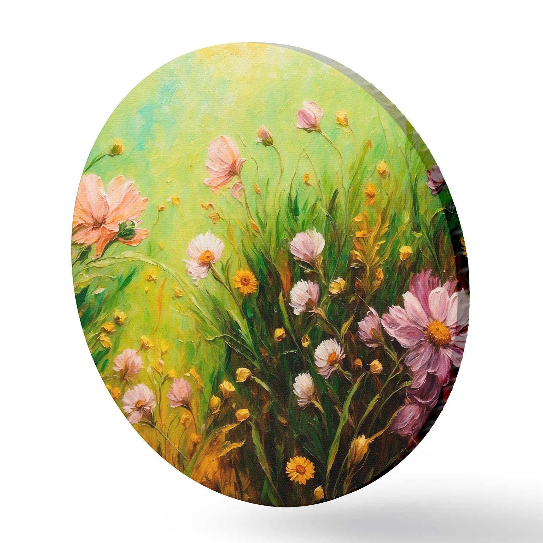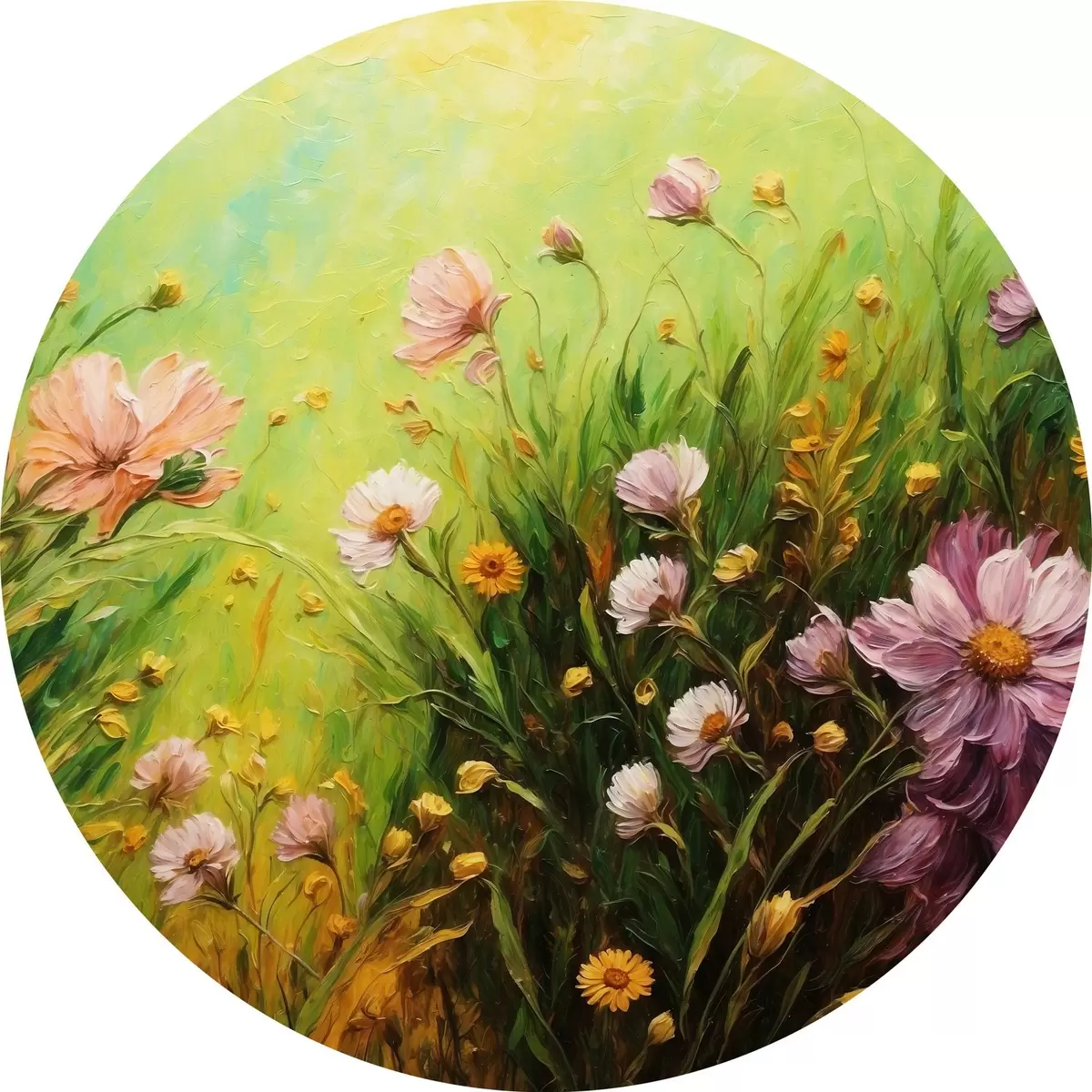 Runde Gemälde Feld von Blumen auf abstraktem grünem Hintergrund r43101