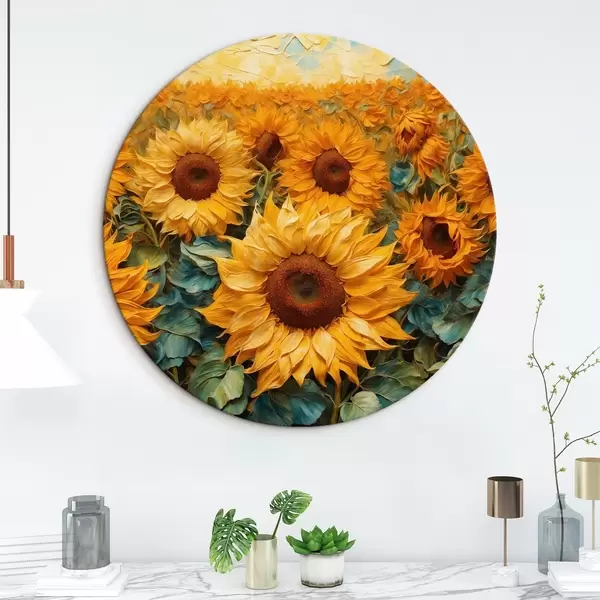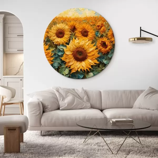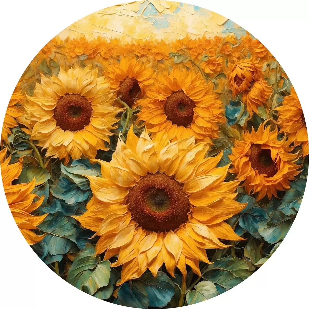 Runde Gemälde Feld von Sonnenblumen in Acrylmalerei Stil r43104