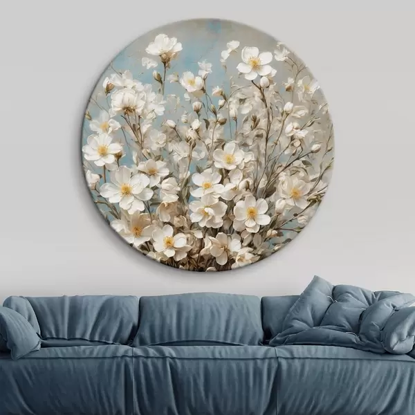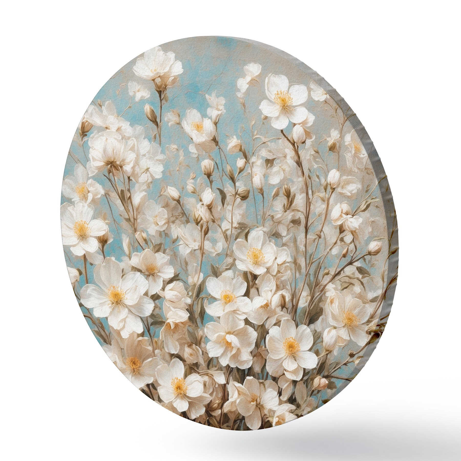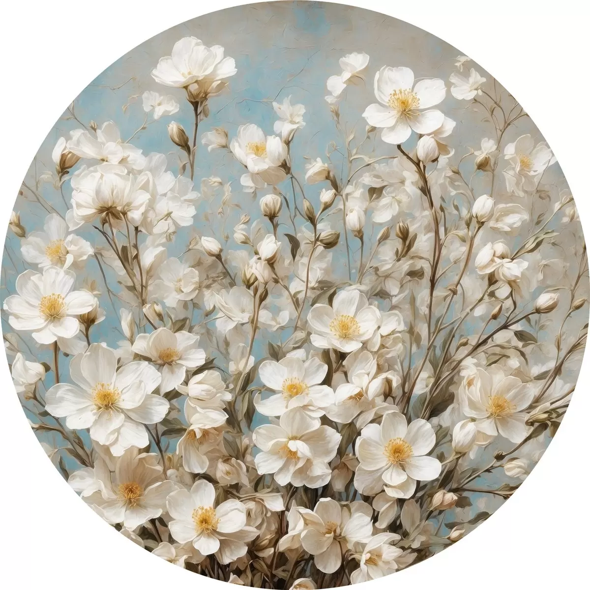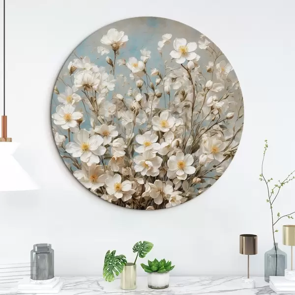 Runde Gemälde Weiße Blumen in Vase auf Acryl-Hintergrund r43107