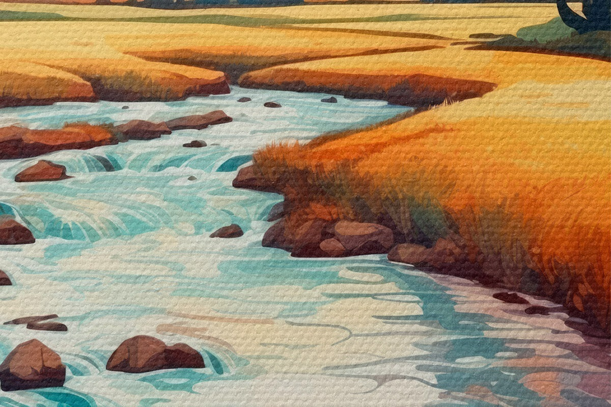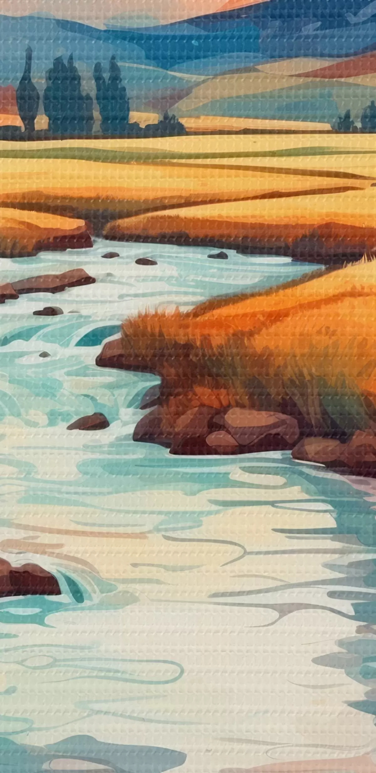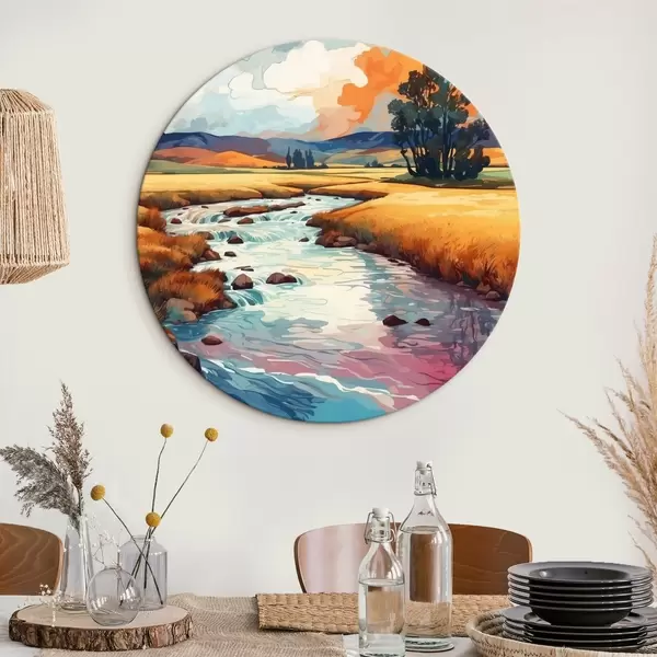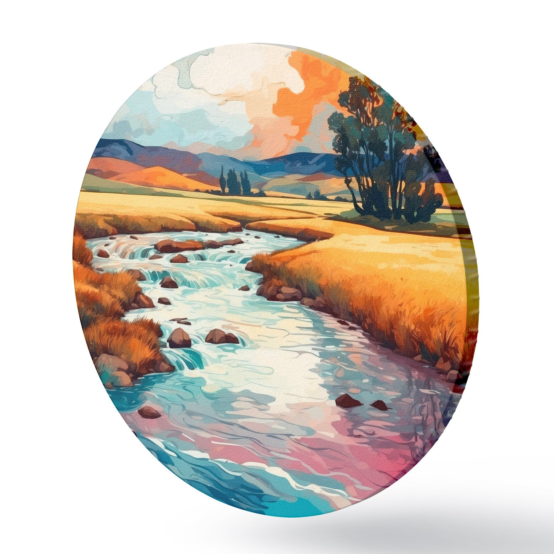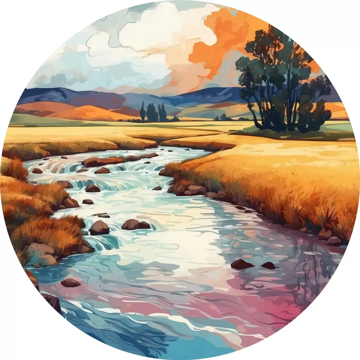 Runde Gemälde Strom auf dem Feld im Stil der Aquarellmalerei r43110