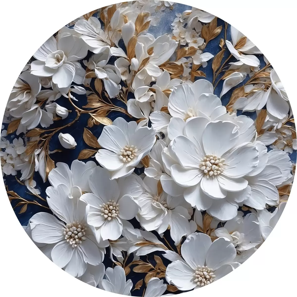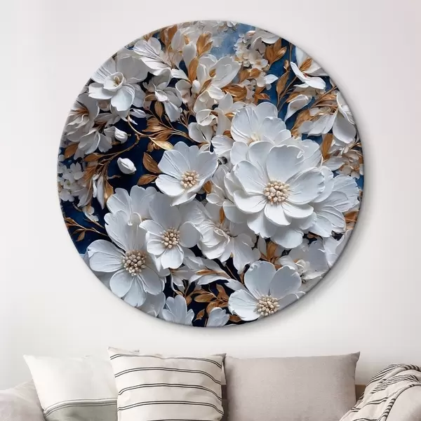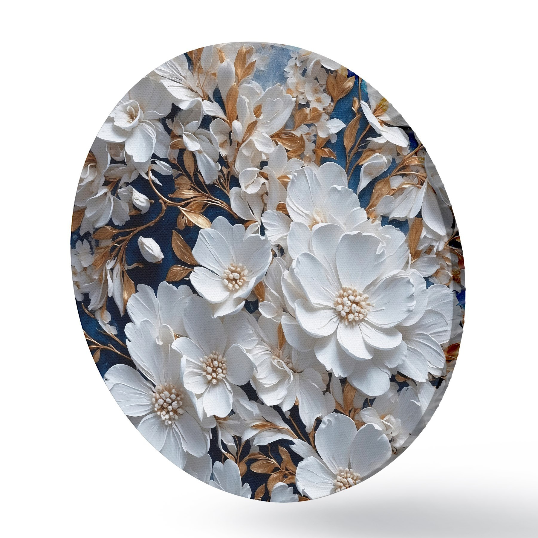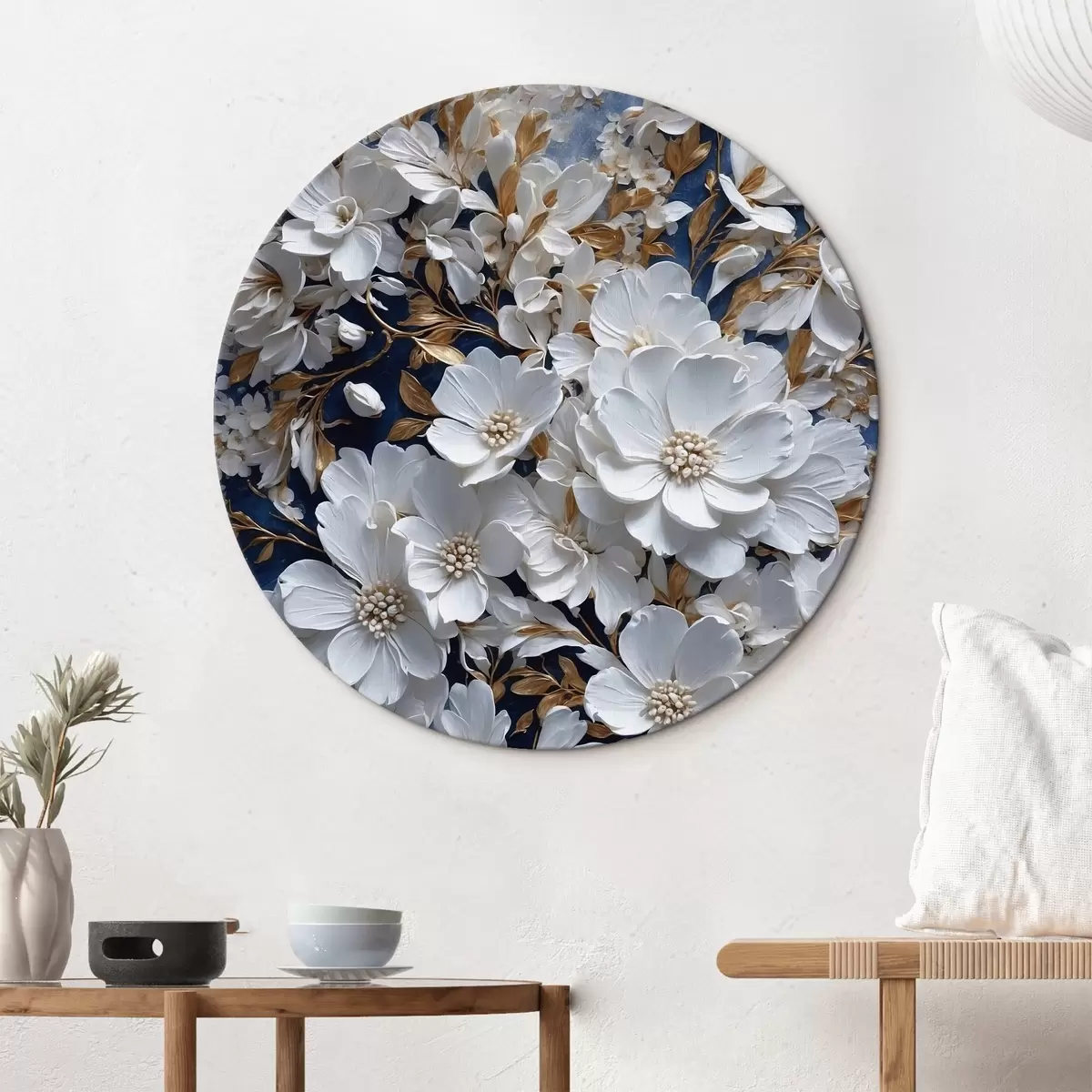 Runde Gemälde Weiße Blumen auf blauem Hintergrund r43116