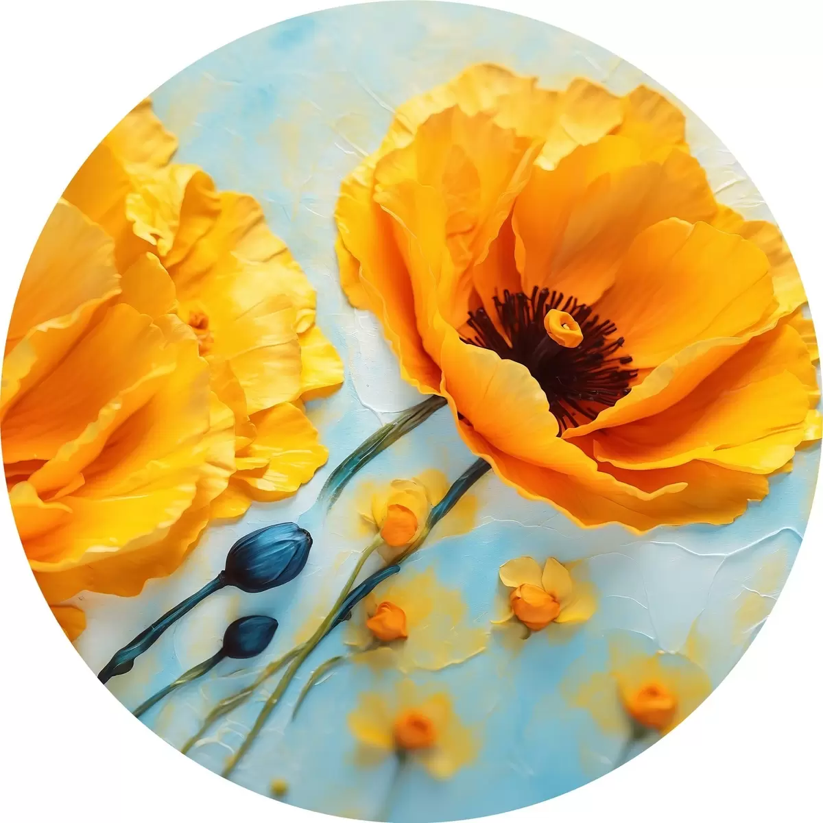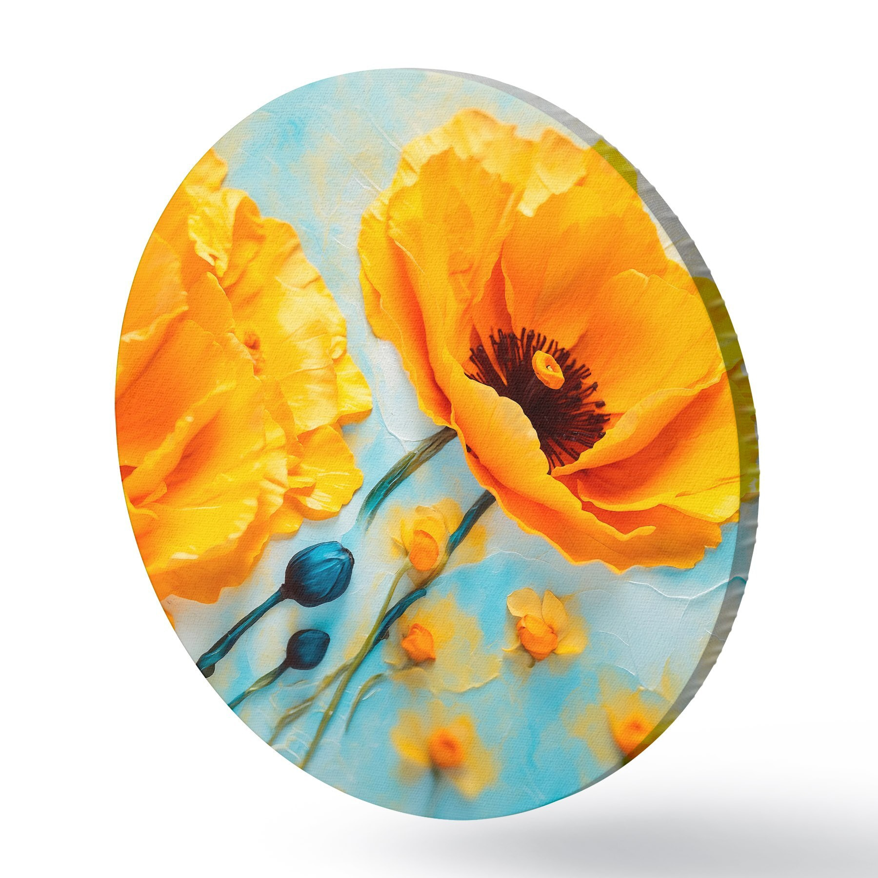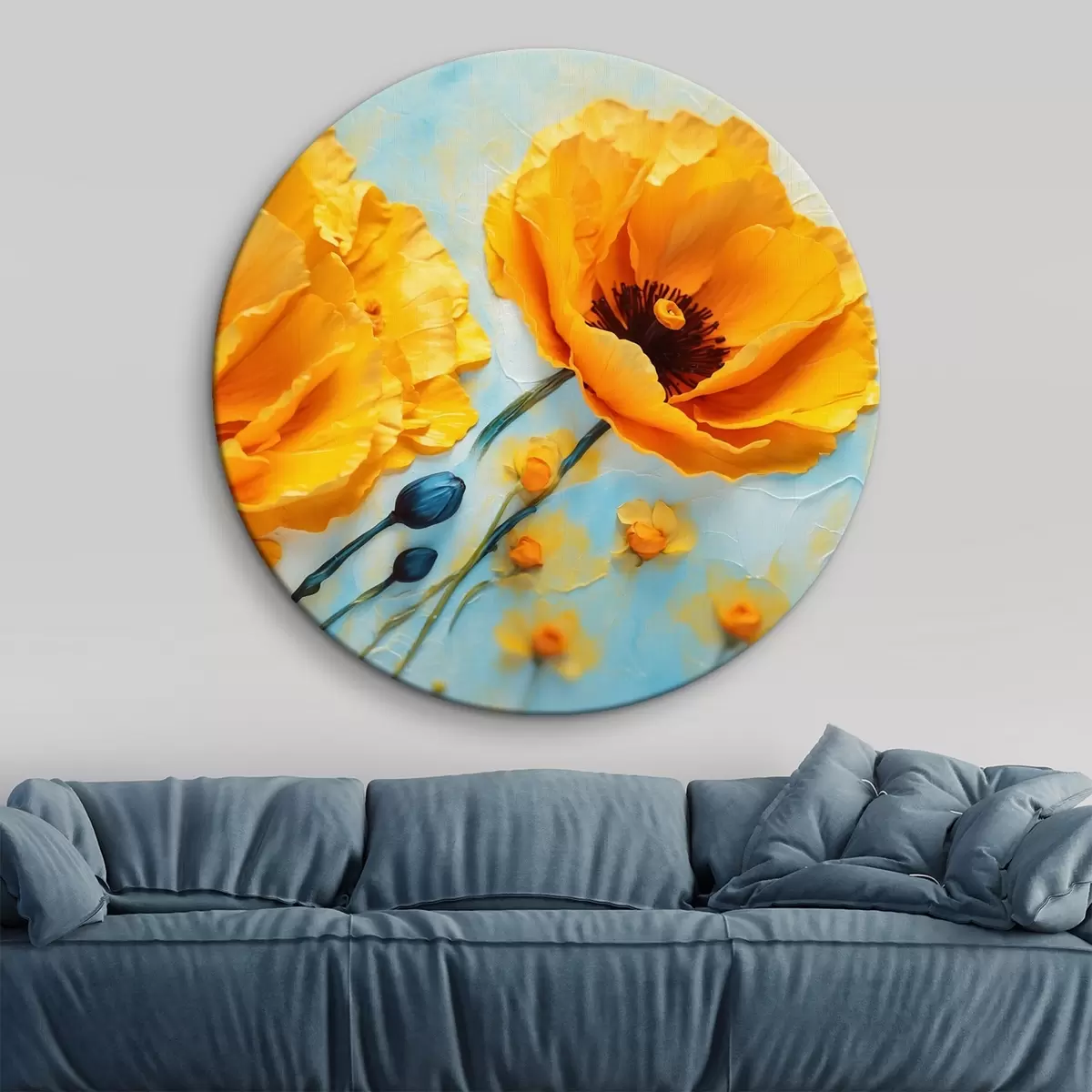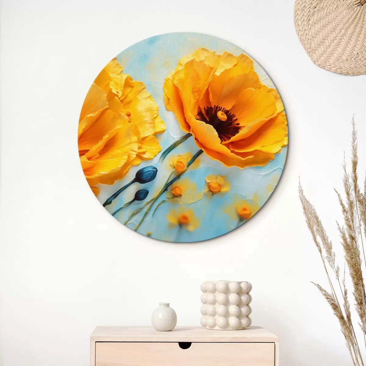 Runde Gemälde Gelbe Mohnblumen auf unscharfem Hintergrund r43118