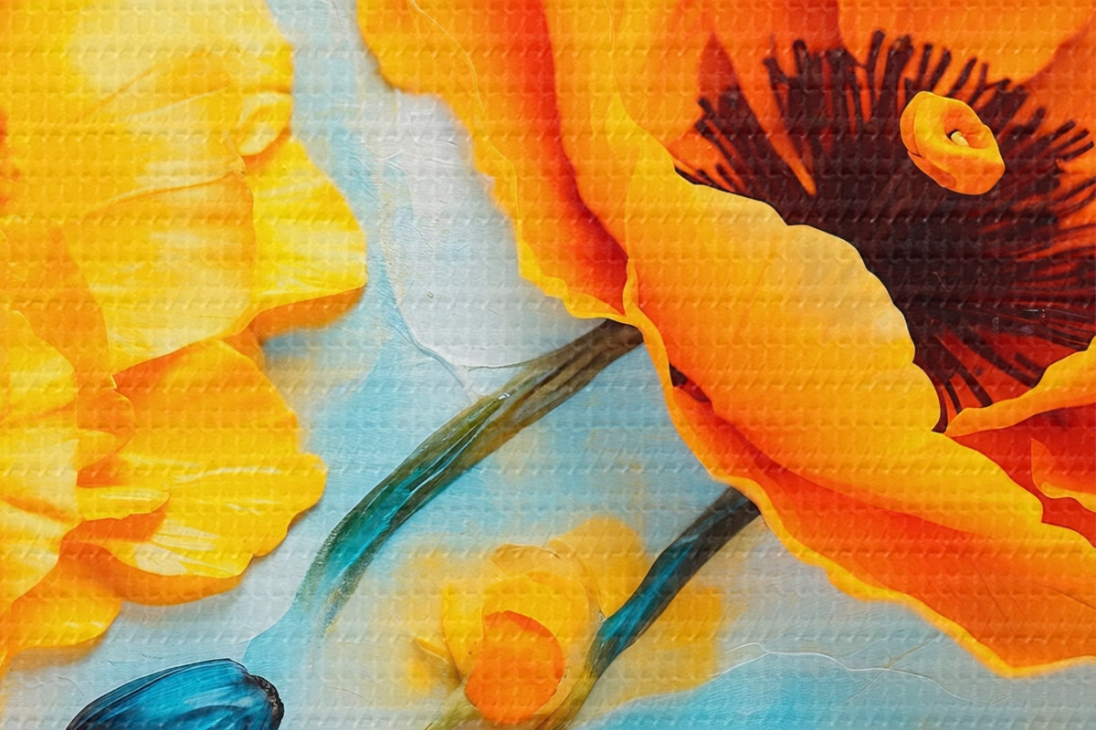 Drei Materialtypen stehen zur Verfügung: Economic Canvas - ein dichtes und haltbares Material für den Digitaldruck, identisch mit Malerleinwand, wasserfeste Oberfläche, realistische Wiedergabe von Details, mittelkörniges Material. Premium Canvas - die Textur ähnelt der einer Malerleinwand (verwobene kleine Fäden). Weiche, detaillierte Wiedergabe des Bildes auf einer matten Oberfläche. Eco-Premium - hochwertiges Gewebe aus 100% Baumwolle. Dank der natürlichen Baumwollfasern ist das Material langlebig und verschleißfest. Hervorragende Farbwiedergabe und Detailtreue.