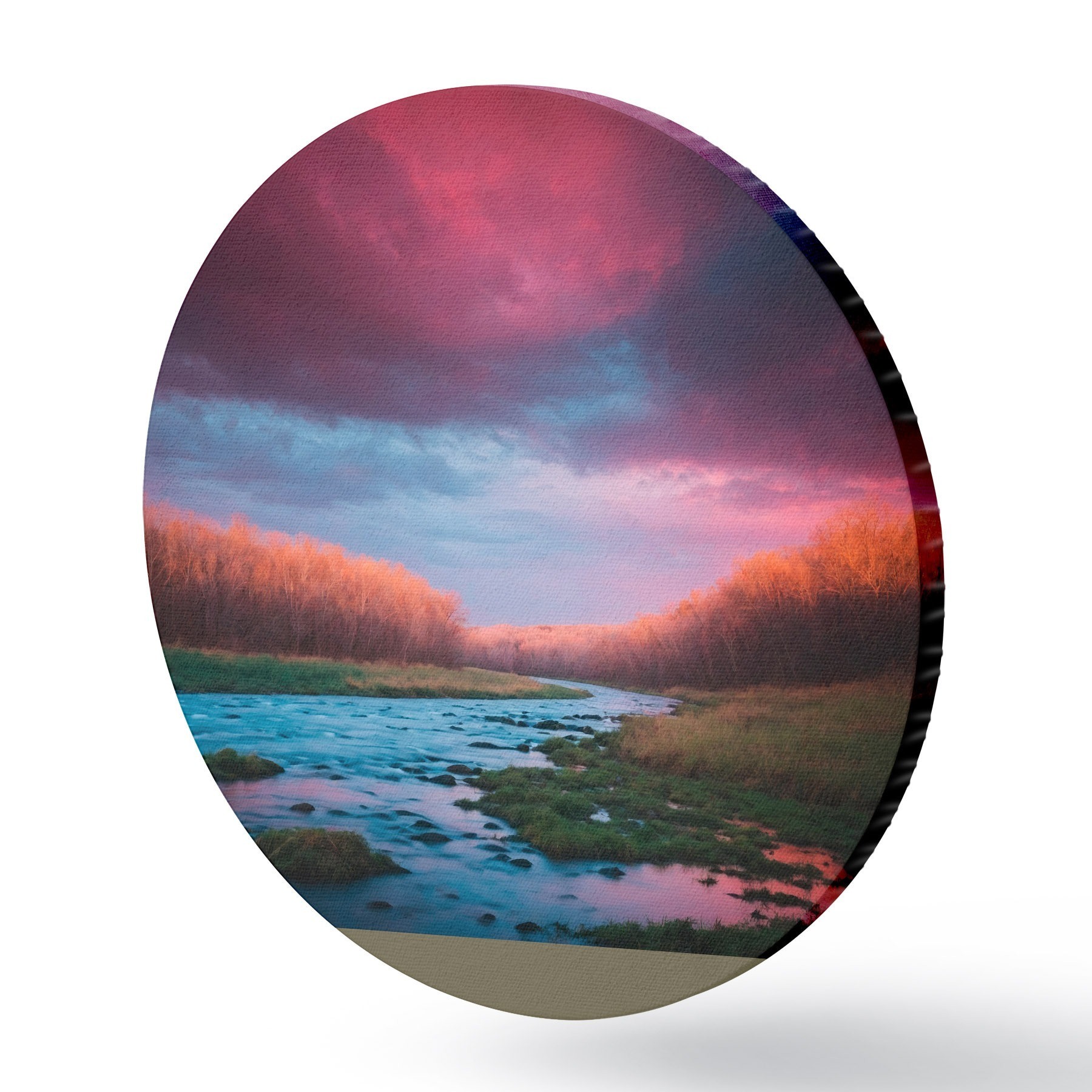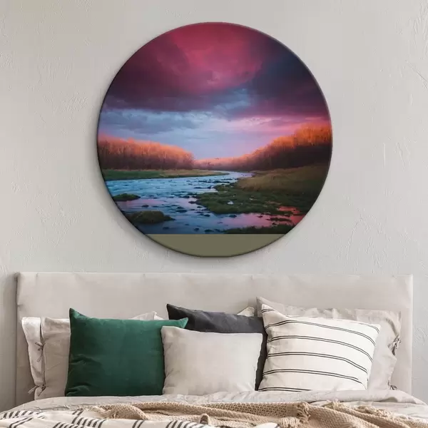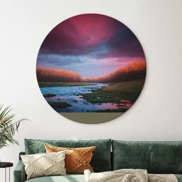 Runde Gemälde Stream im Feld auf dem Hintergrund der lila Himmel r43120