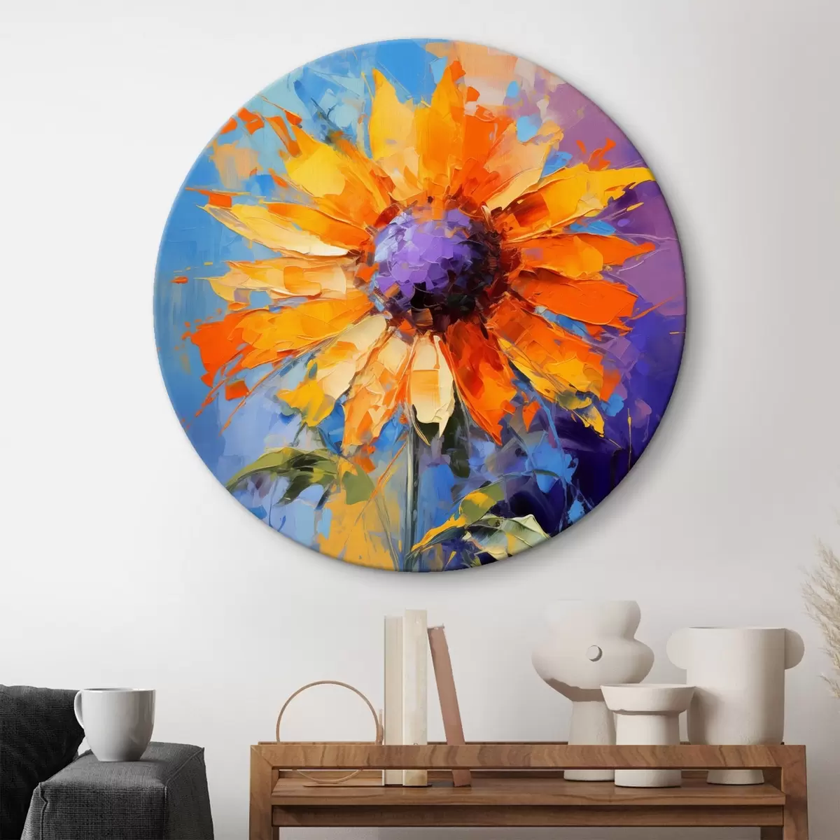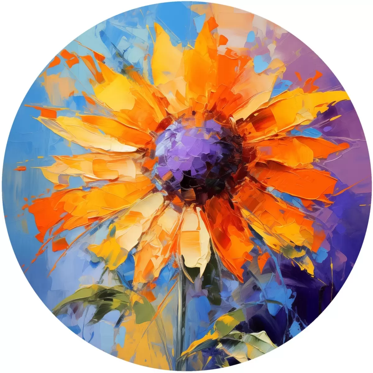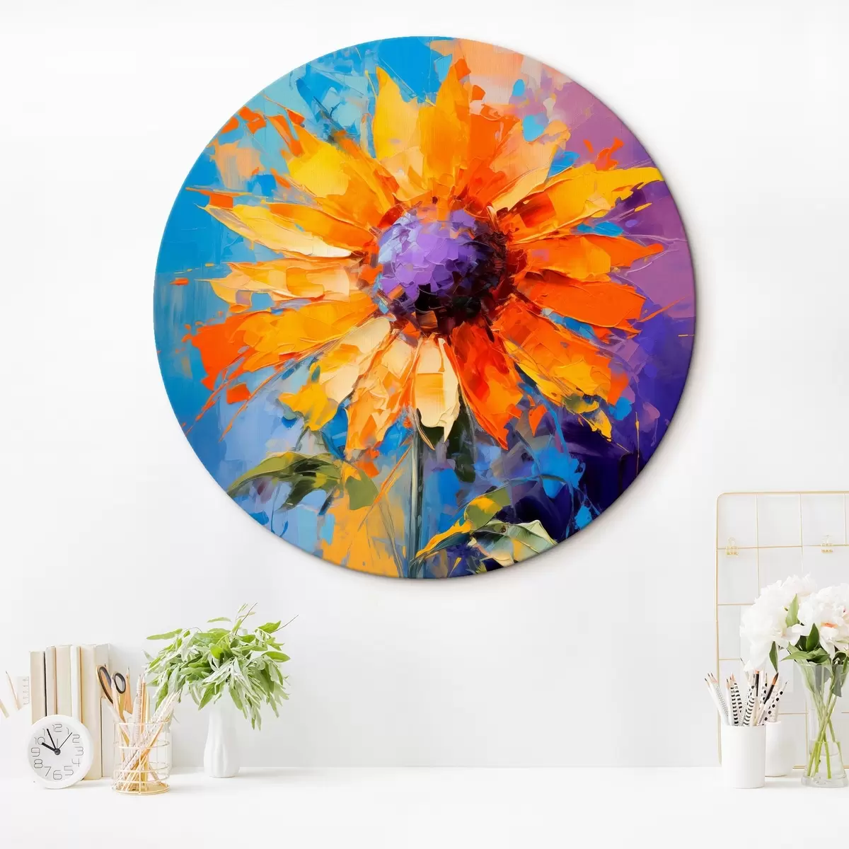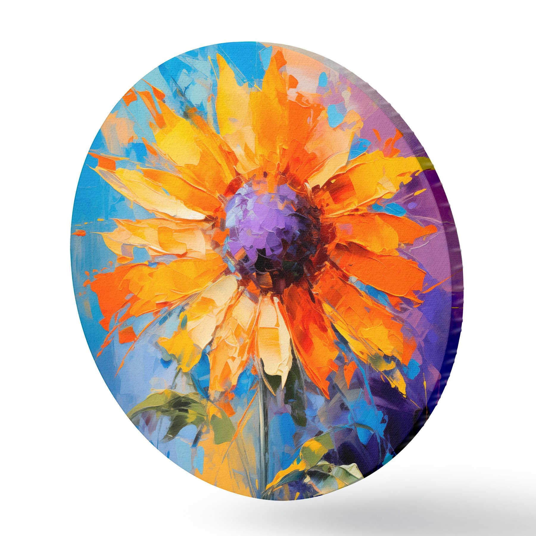 Runde Gemälde Eine leuchtende Sonnenblume im abstrakten Malstil r43133