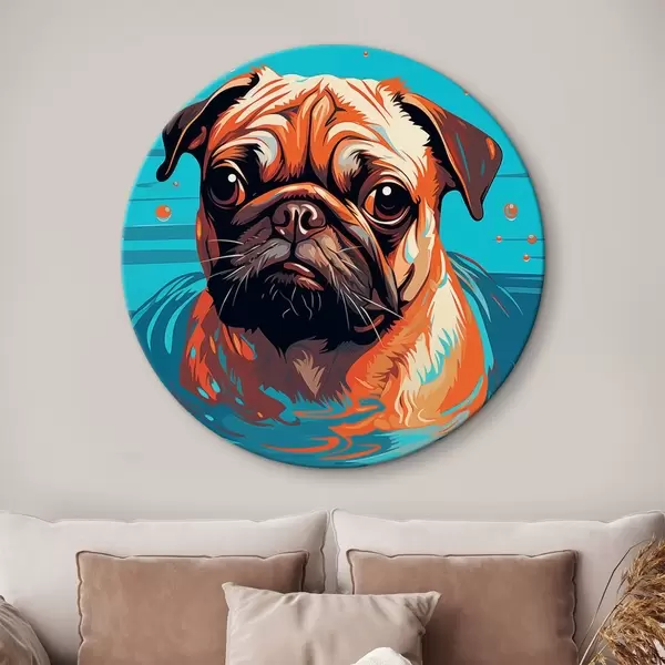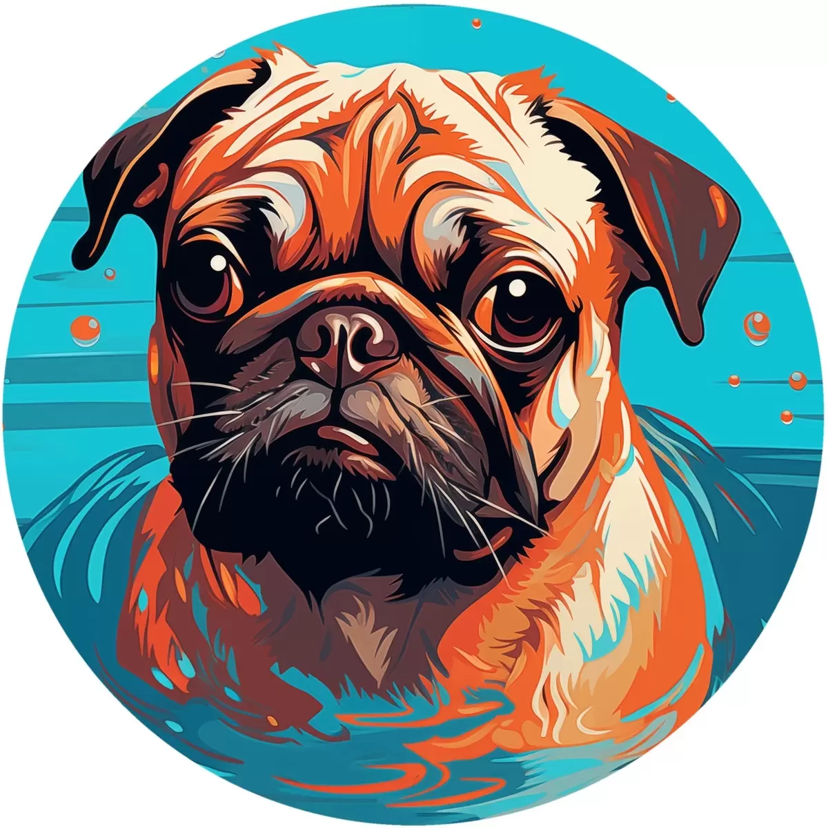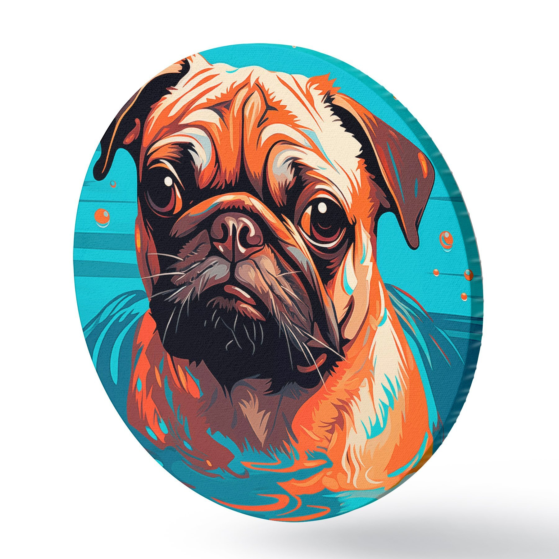Runde Gemälde Ein stilisiertes Porträt eines Mopses im Wasser mit ausdrucksvollem Blick r43136